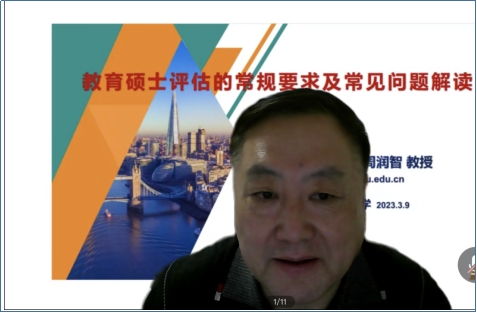 本次讲座,特邀沈阳师范大学教育硕士研究生院周润智二级教授作《教育硕士评估的常规要求及常见问题解读》。讲座由研究生院副院长余劲东主持,我校8个教育硕士培养学院分管院长线下参加会议,100余名教育硕士导师线上参与了讲座。