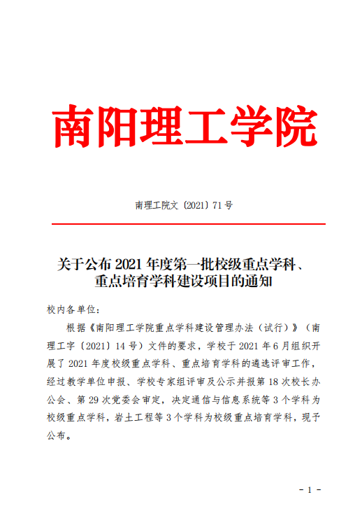 2021年7月1日,我院“建筑学”学科顺利通过了学校学术委员会专家及校外专家评审,正式列为校级重点培育学科。这是我院近年来在学科建设上取得的一次重大突破,是对我院近年来积极转变观念、锐意改革、苦练内功、不断提高学院核心竞争力的充分肯定。