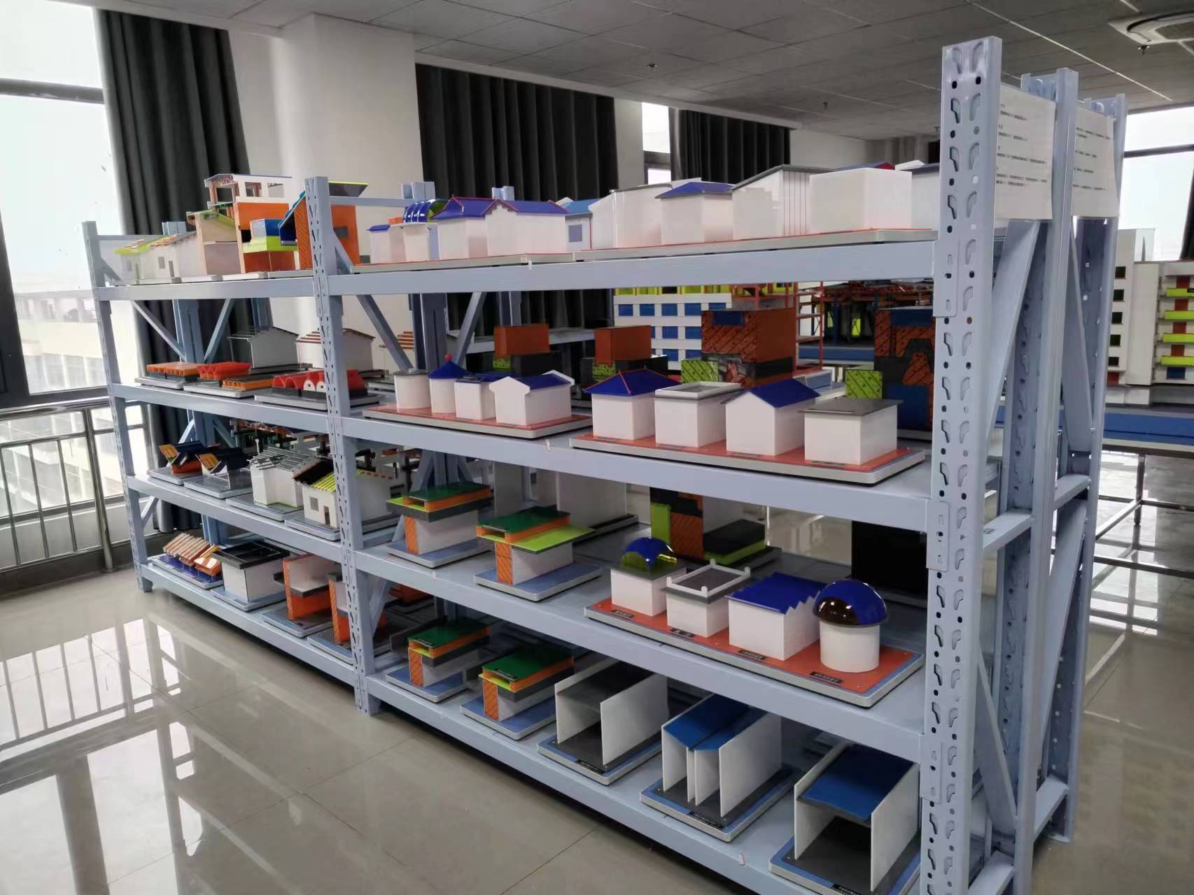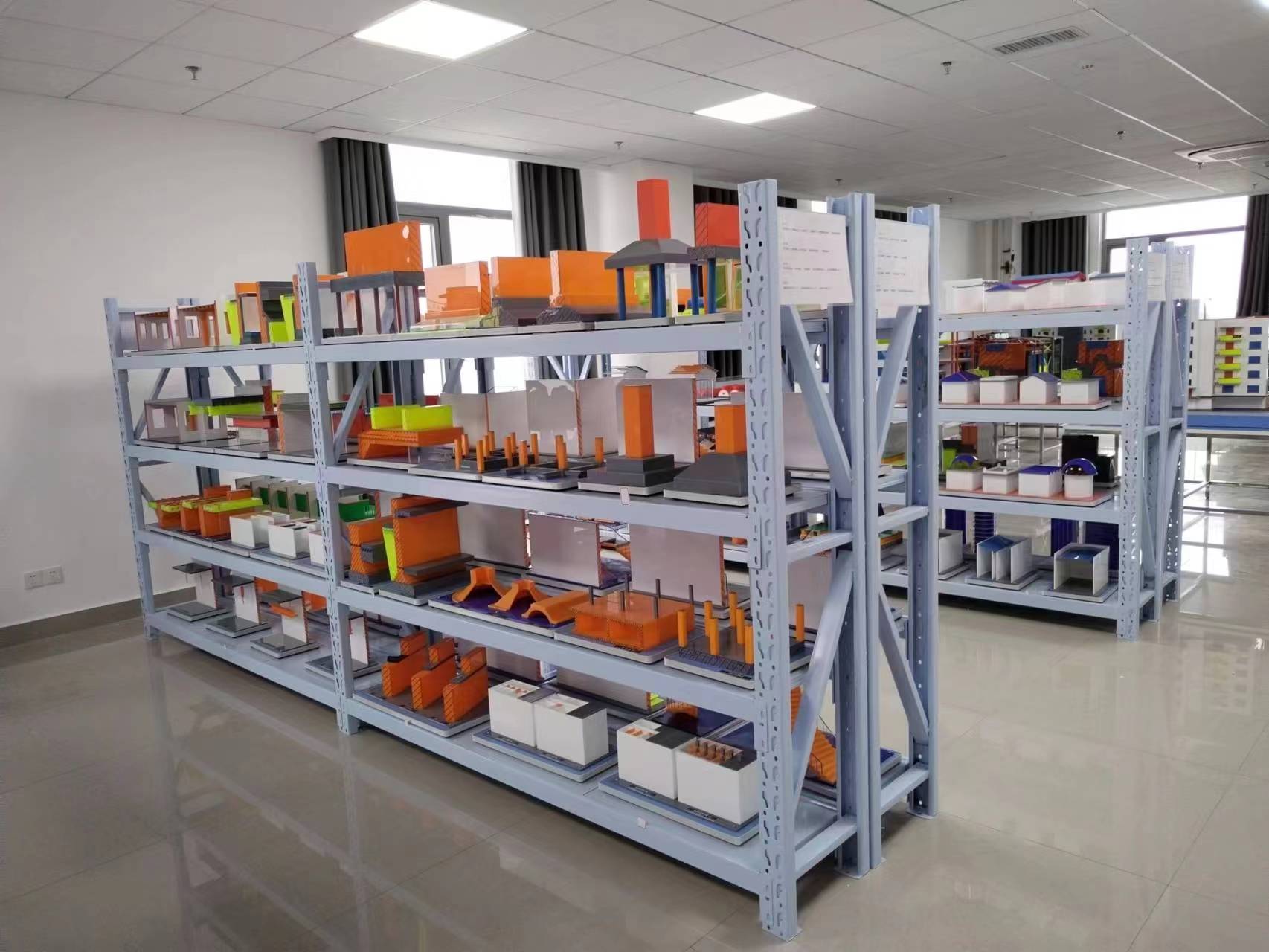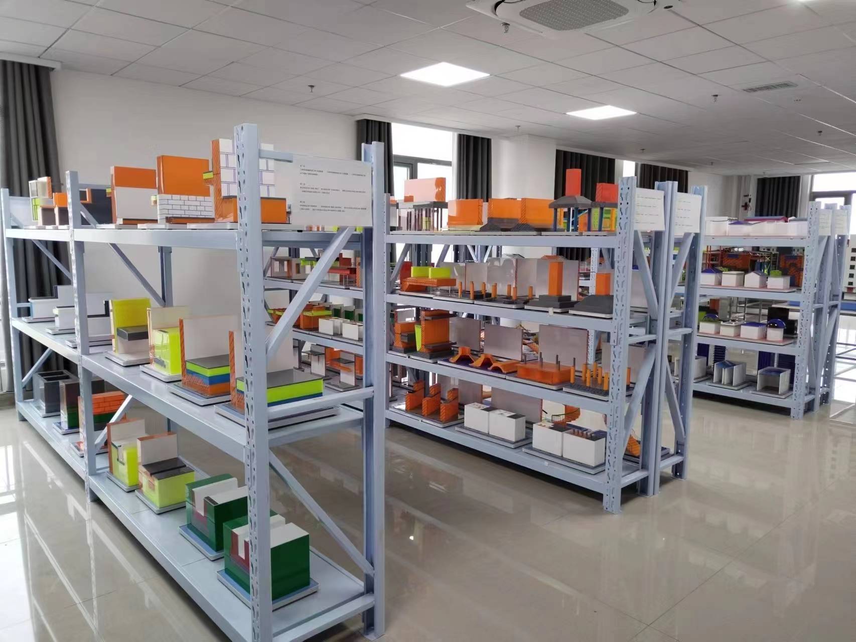 建筑材料与构造展示室,建立于2020年,建筑面积约136平方米,主要用于展示建筑室内外构造、装饰材料及做法的实验室。现有民用房屋基本组成教学模型、单层工业厂房结构模型、框架剪力墙高层建筑结构教学模型、轻钢结构教学模型(局部)、砖混结构宿舍楼(局部)教学模型、框架结构实验楼(局部)教学模型。能开展建筑构造、建筑材料与建筑装饰构造等课程的教学。