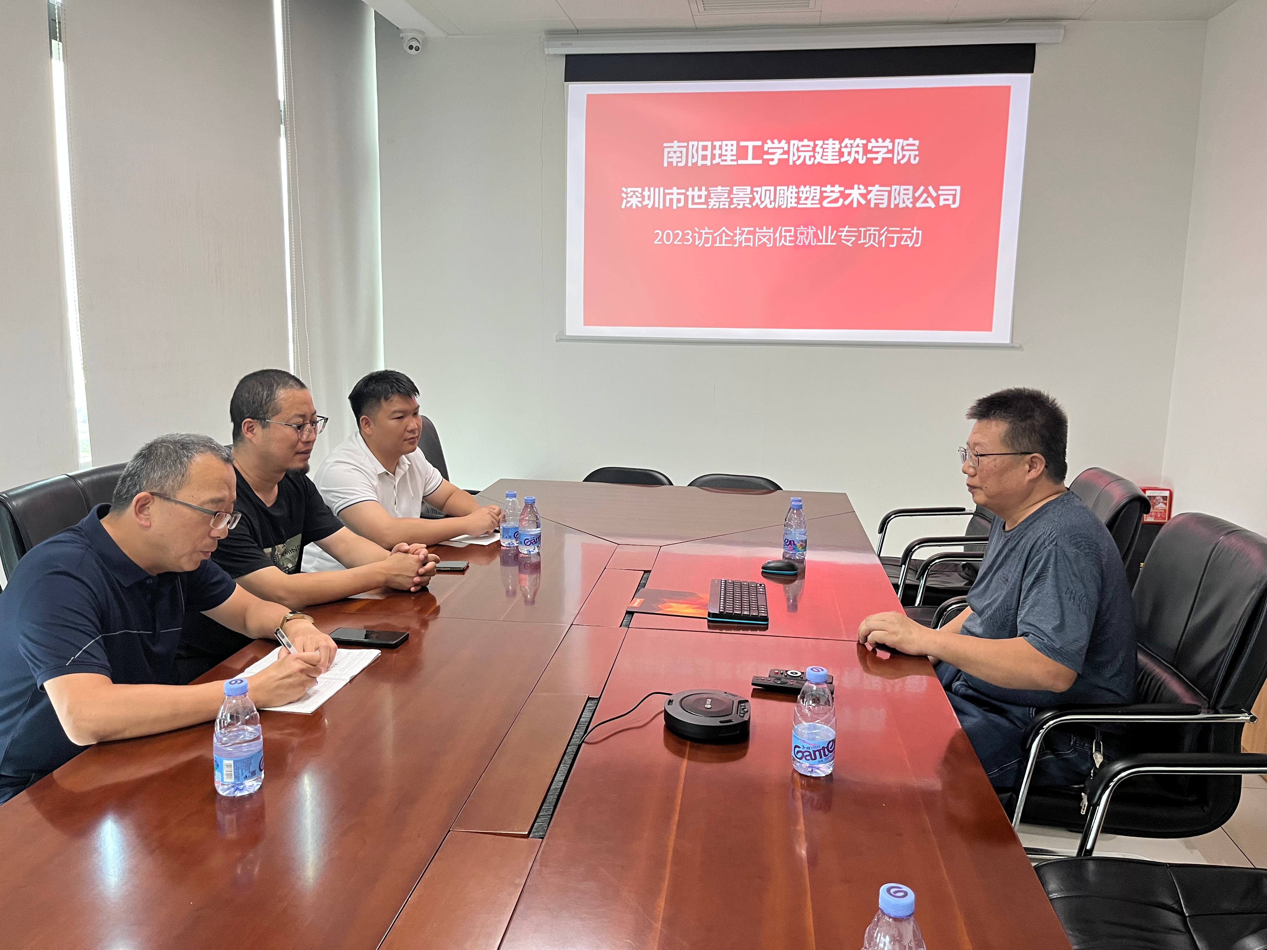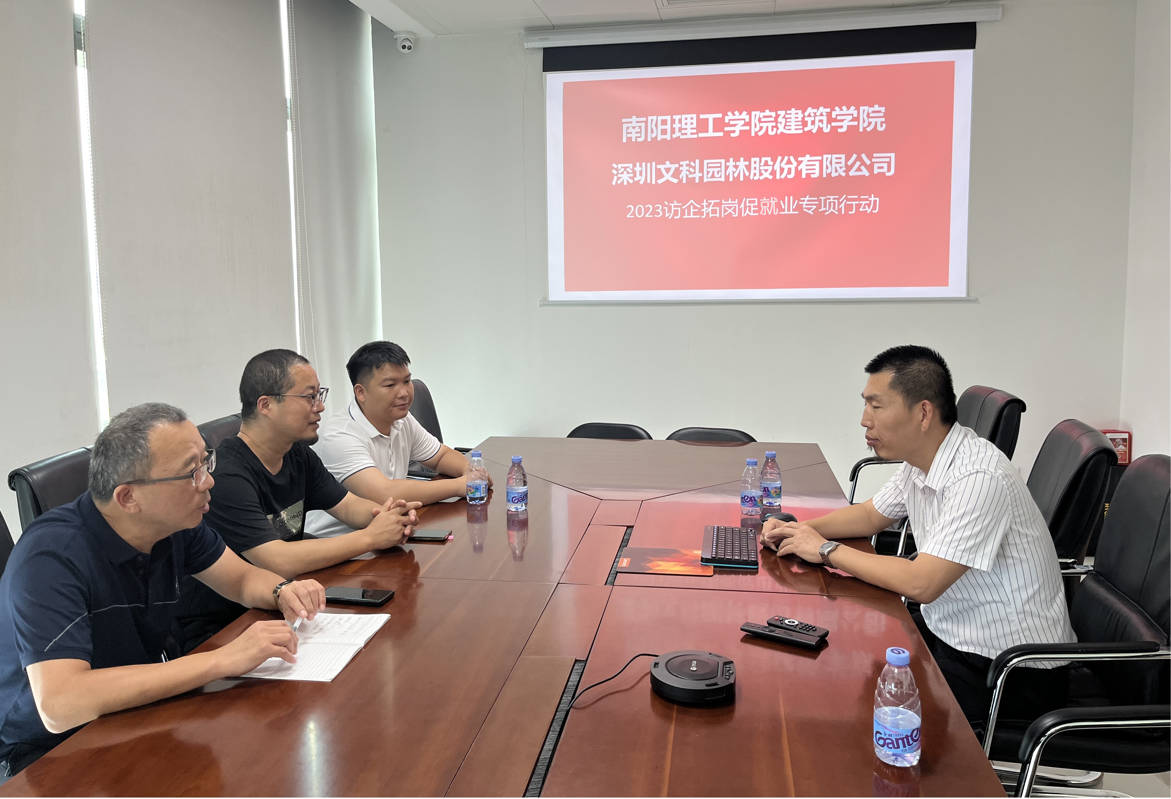 本网讯 8月12—15日,6686体育党委副书记张辉一行赴深圳新艺华建筑装饰工程有限公司、深圳文科园林股份有限公司、广田设计院、云帆空间(深圳)设计顾问有限公司、深圳市世嘉景观雕塑艺术有限公司、深圳市领贝机器人有限公司开展“访企拓岗促就业”专项行动。