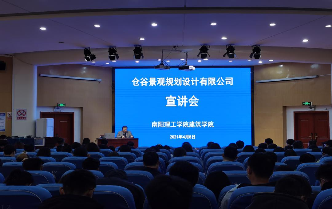 会上,仓谷景观规划设计有限公司招聘负责人对公司的基本情况、职业发展和人才需求、招聘条件和流程进行了介绍。负责人表示,公司致力于通过高品质、多元的产品与服务,对高端居住、文旅文娱、商业配套等资源进行整合。同学们纷纷询问相关信息,投放简历。