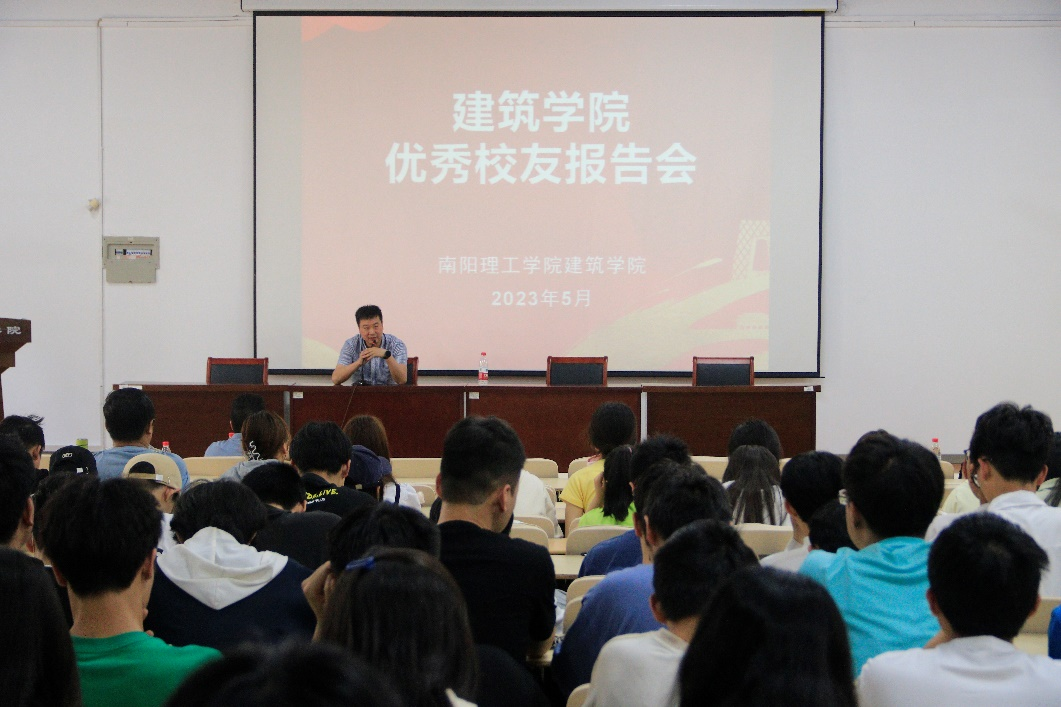 本网讯(学生记者/贾欣豪)为使在校生更加了解自己的专业,增强专业归属感,5月19日,6686体育举办优秀校友报告会,特邀我院优秀毕业生蒋策安、王勤书、何鲜明、姚士超四人出席。全体建筑学学生到场参加。