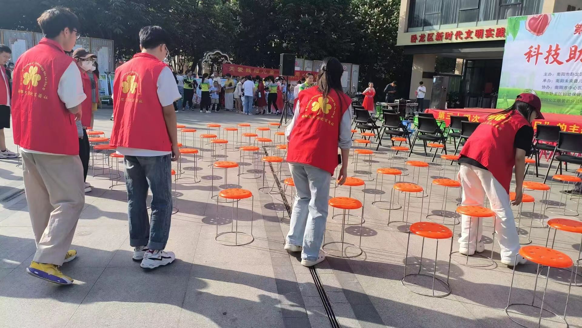 早上7点30分,师生团队到达会场,在做了详细分工后,志愿者们纷纷行动起来布置会场,摆凳子、搬桌子、挂条幅、吹气球、搭舞台……准备工作紧张有序,在大家的齐心协力之下,活动现场焕然一新。