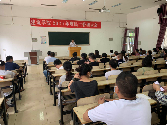 5月19日,6686体育在7阶101教室召开2020年度教职工民主管理大会,副院长周中玉主持,全体教职工参加会议。