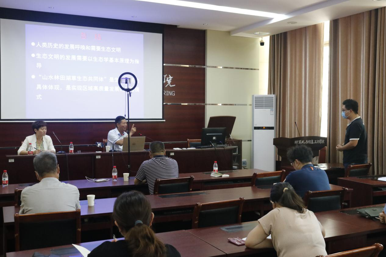 丁圣彦教授从文明和文化讲起,溯源“生态文明”的概念与内涵,围绕其发展历程展开阐述,梳理了相关理论知识,重温了党的十八大、十九大关于生态文明建设的战略安排,进而指出人类的生存和发展正不断呼唤着生态文明,牢固树立中国特色社会主义生态文明观,有助于推动形成人与自然和谐发展的新格局。丁教授在讲座过程中旁征博引,联系我国的二十四节气理论讲述古代农耕文明的智慧,利用生态适应和生态位的概念指出:协同进化、共存和优化调控结构是生态文明理念下资源循环再生的理论基础。