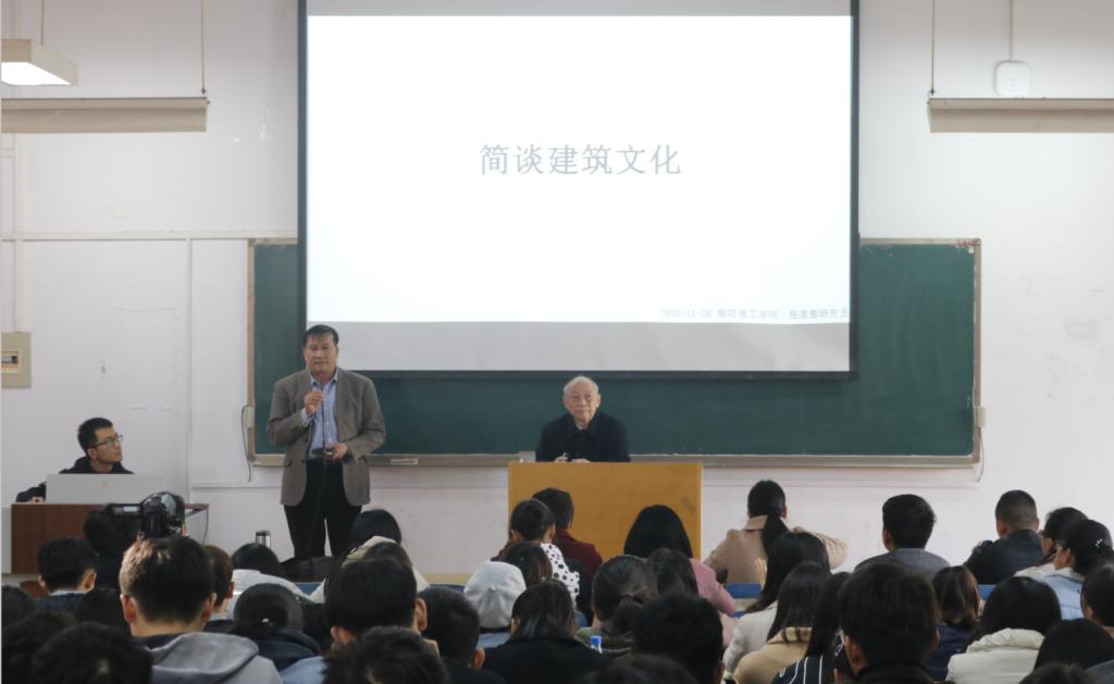 11月26日下午,建筑与城市学院邀请河南省古代建筑保护研究所的原所长张家泰先生在14教102教室为我院师生做了“简谈建筑文化”为专题的讲座。本次讲座由中国圆明园学会秘书长宋国晓先生主持,张建文院长、谭征院长、张辉院长,各专业老师,15、16、17、18级历史建筑保护工程专业的全体学生参加了本次讲座。