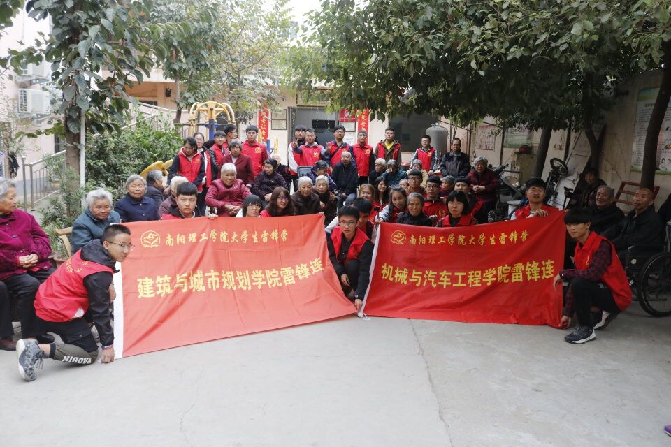 10月21日,建筑与城市规划学院雷锋连同机械与汽车工程学院雷锋连一起到南棉社区敬老院进行九九夕阳红活动。