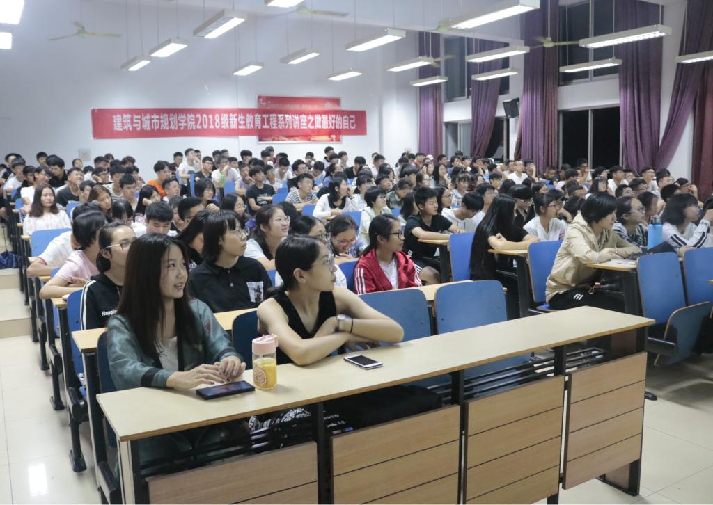 9月13日,建筑与城市规划学院在14#306教室举行主题为“做最好的自己”新生教育讲座,主讲人为张建文院长,全体2018级新生聆听了本次讲座。