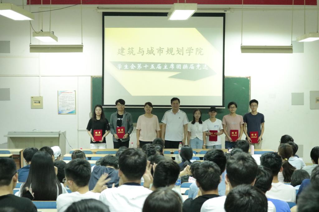 6月21日晚七点半,建筑与城市规划学院于14#102进行了学生会主席团换届竞选,党委书记陈博、团学办主任杜鹤、辅导员杨菲、卢钖钖及17级全体学生及学生会成员参加了此次活动。