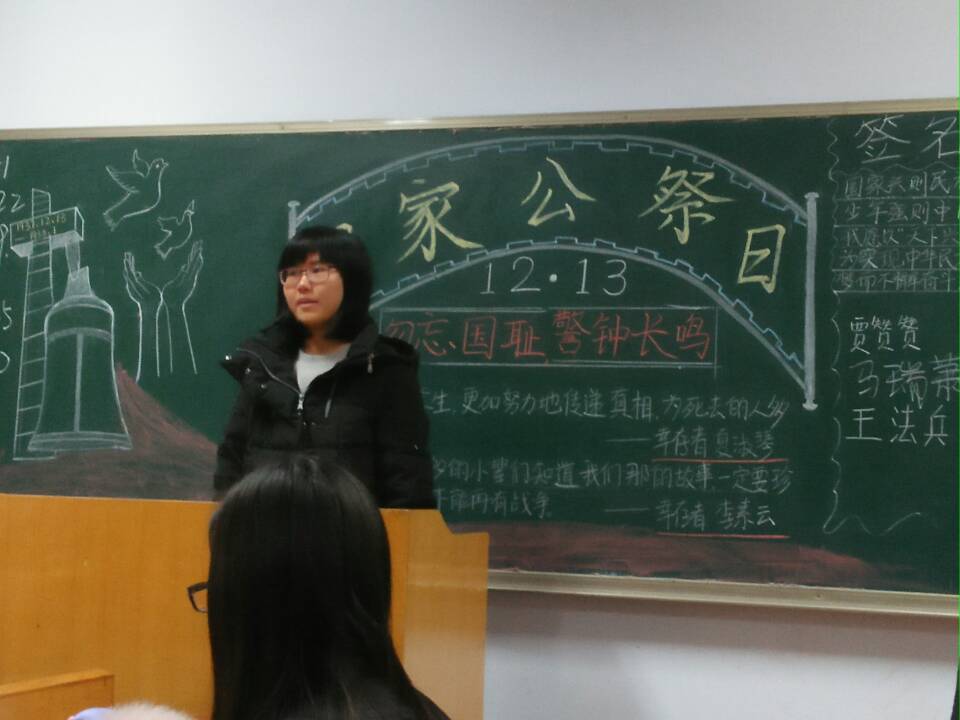 通过班会和观看影片,同学们了解了公祭日的真正意义:应该不忘国耻,珍惜现在的和平时代。同时还激发了同学们的爱国情怀,培养了大学生们的民族责任感。