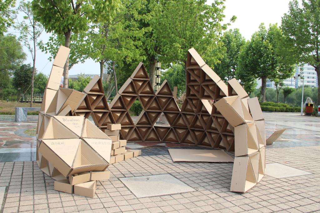 参加今年成果展览23支代表队分别来自我院16级各个专业,参赛队从6月18起开始在广场上搭建,经过2天的的辛苦、紧张、快乐的建造,23栋各具特点的纸板房在广场上矗立起来。院领导与参加建造节的同学们亲切交谈,对他们搭建的空间成果进行肯定并讲评其中的优劣,专业课教师们也也逐个对模型进行点评,学生们在现场向评委们介绍了创作的灵感来源、空间意义等,学生们丰富的想象力和不惧炎热团结一致的精神也获得了老师们的一致好评。