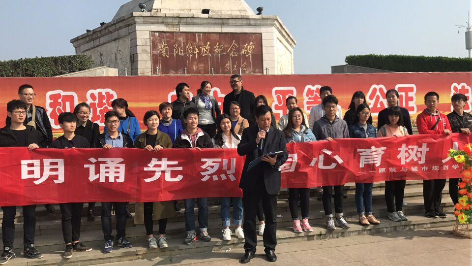 为了缅怀先烈,传承爱国主义精神,4月1日上午,建筑与城市规划学院学院党委书记陈博、院长张建文及师生党员一行前往南阳解放碑纪念广场,开展“清明诵先烈,国心育树人”祭奠先烈主题党日活动。