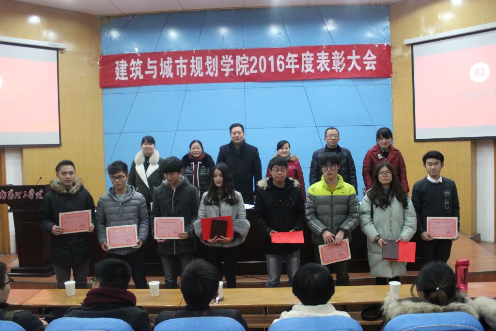 12月28日,建筑与城市规划学院2016年度学生表彰大会在领创空间二楼报告厅隆重举行。院长张建文,党委书记陈博,副院长谭征、张辉以及全体学工队伍、部分学业导师出席大会,团学办公室主任杜鹤主持本次大会,表彰先进学子,树立典型示范。