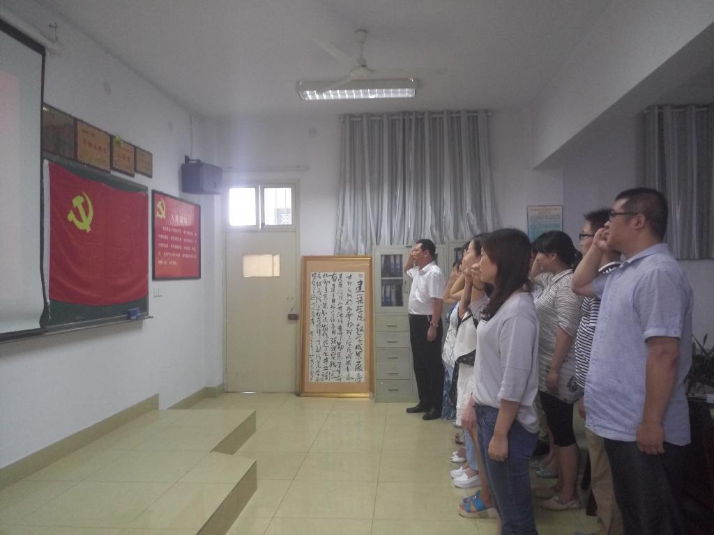 6月28日主题活动当天,学院组织教工党员观看英烈纪录片、重温入党誓词、答写试卷重温党的知识,在活动的过程中,每一名党员铭记党的历史,牢记党的使命,缅怀先烈,更加珍惜和平,勇于担当,做好日常教学工作和学生管理服务工作。重温入党誓词时,学院党委书记陈博领誓,全体教工党员举起右手,面对鲜艳的党旗,庄严宣誓,重温入党誓词。“我志愿加入中国共产党,拥护党的纲领,遵守党的章程,履行党员义务,执行党的决定……”同志们铿锵有力的宣誓,表达了对党的无限忠诚,更加坚定了为共产主义事业奋斗终身的信心和决心。