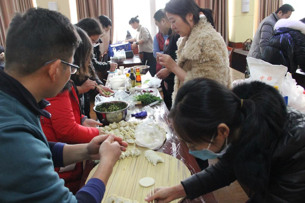 活动期间,老师同学们的热情高涨地积极准备着,调饺子馅,擀饺子皮,一系列准备工作结束后,大家开始大展身手,一个个精致的水饺在老师们的手中诞生,同学们的“作品”则是千奇百怪,形状各异。老师同学们围坐在一起吃饺子,唠家常,大家有说有笑,场面热闹非常。