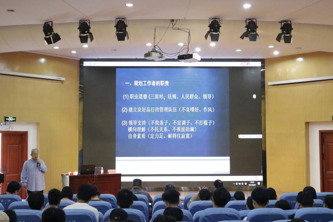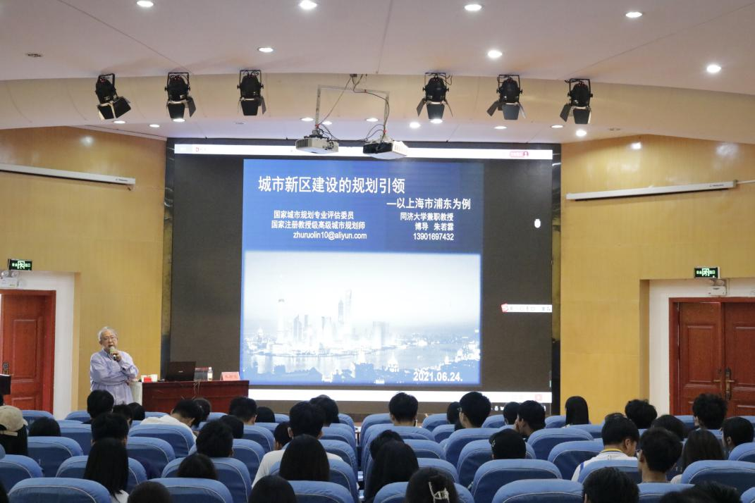 会议上,朱若霖教授首先就上海浦东新区为例提出“城市新区城市规划设计的思路、城市新区与旧区的关系、城市新区城市规划的实施”三点关于城市规划的看法。朱教授说:“城市新区设计应体现“特”与一般的不同,城市新区城市设计应体现超前意识与可操作性的协调统一。”随后,朱若霖教授提出了新老共存的看法,建议在城市的规划与建设中药做到统一规划,统一开发,分期实施,逐步推进。会议最后,同学们积极提问,朱教授一一解答并向同学们提出要恪守规划工作者职责,要拥学习夯实专业知,提高自身专业素养水平的要求。