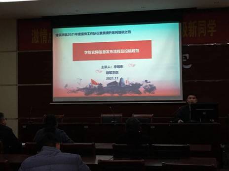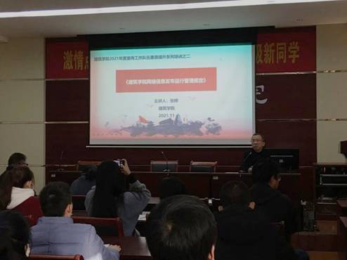 (通讯员 田真)为进一步加强意识形态阵地管理,严防网络信息传播安全事故,促进学院新闻宣传工作良性发展,11月29日至30日,6686体育举办2021年度宣传工作队伍素质提升系列培训。学院党委领导班子、科级干部、学院网站管理员及宣传部全体部员参与培训。