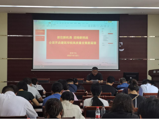 院长谭征首先总结了刚刚成功举办的《忆宛情深,豫建未来--纪念杨廷宝先生返乡四十周年暨南阳省级副中心城市建设》学术论坛,对辛勤付出的教职工们进行了感谢。然后总结了我院上半年的党建、团学、教学、科研、学科竞赛、就业等各方面的工作取得的成绩,并对建筑学评估工作进行了下一步的部署和安排。希望大家结合“观念能力作风建设年”活动,转变工作观念,调整工作心态,以时不我待的紧迫感,利用暑假时间,铆足干劲,迎接挑战,不断提升个人的教学水平、科研水平。