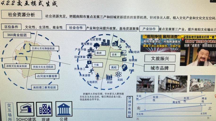 本次毕业设计中期答辩从规划及建筑设计层面为古宛城保护及发展提出了新的思路和方法,对南阳市城市发展及河南省副中心城市建设增砖添瓦,也为南阳市区域中心城市的建设贡献了一份应有的力量。本次毕业设计与市场需求和未来发展趋势一致,有助于引导毕业生在服务社会发展、引领城乡建设方面发挥出更大的作用。
