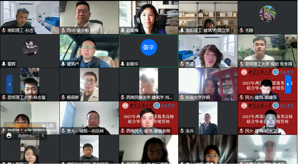 本网讯(记者/孙忠)2023年4月9日上午,由6686体育主办的“2023年西部地区联合毕业设计中期答辩”通过腾讯会议平台举办。本次毕业设计由南阳理工学院召集,设计题目为“传承与共生——南阳古宛城核心区域更新规划与设计”,来自南阳理工学院、昆明理工大学、湖南大学、西南民族大学、大理大学、内蒙古科技大学、攀枝花学院、长安大学、西华大学、绵阳师范学院、广西大学、贵州大学等12所院校的50组同学出色完成汇报。