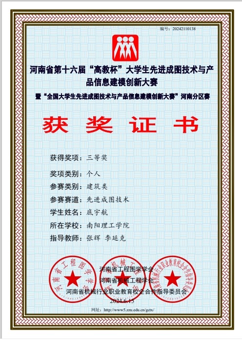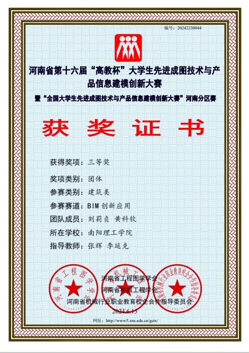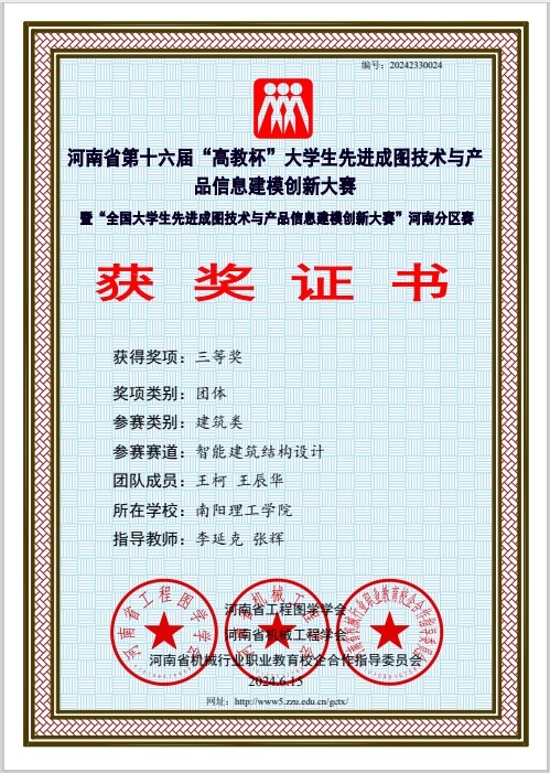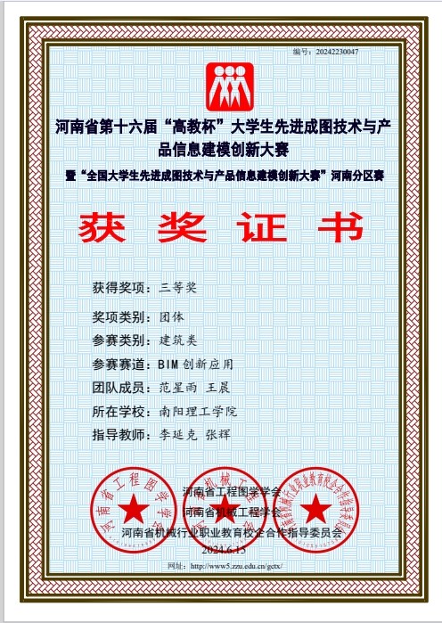 本网讯(记者/李延克)5月24日至5月25日,河南省第十六届“高教杯”大学生先进成图技术与产品信息建模创新大赛于线上举行。经过激烈角逐,土木学院与6686体育参赛队伍荣获建筑类团体一等奖,荣获建筑类BIM创新类三等奖3项;建筑类智能建筑结构设计三等奖1项;建筑类先进成图技术一等奖1项,二等奖3项,三等奖12项。