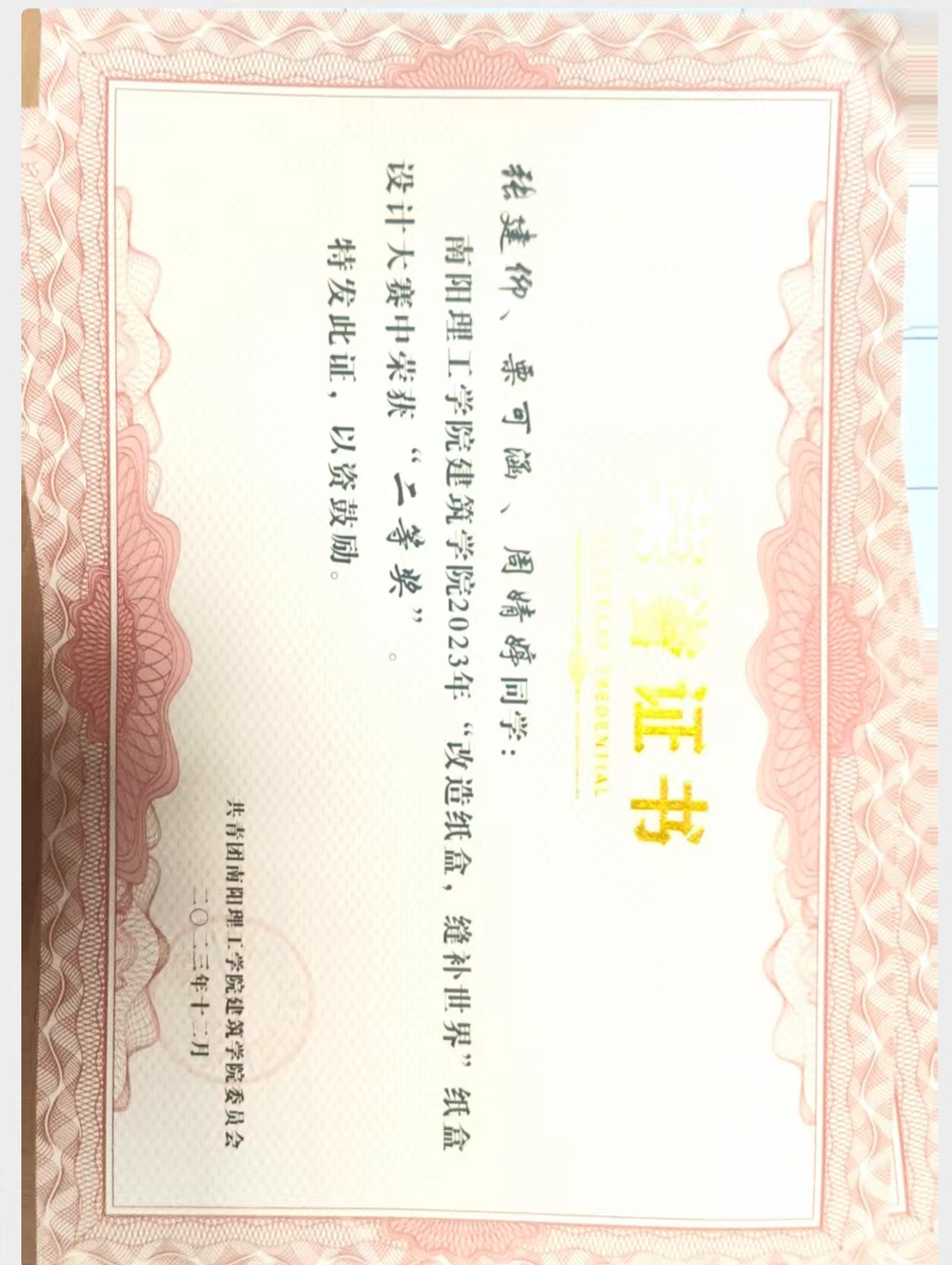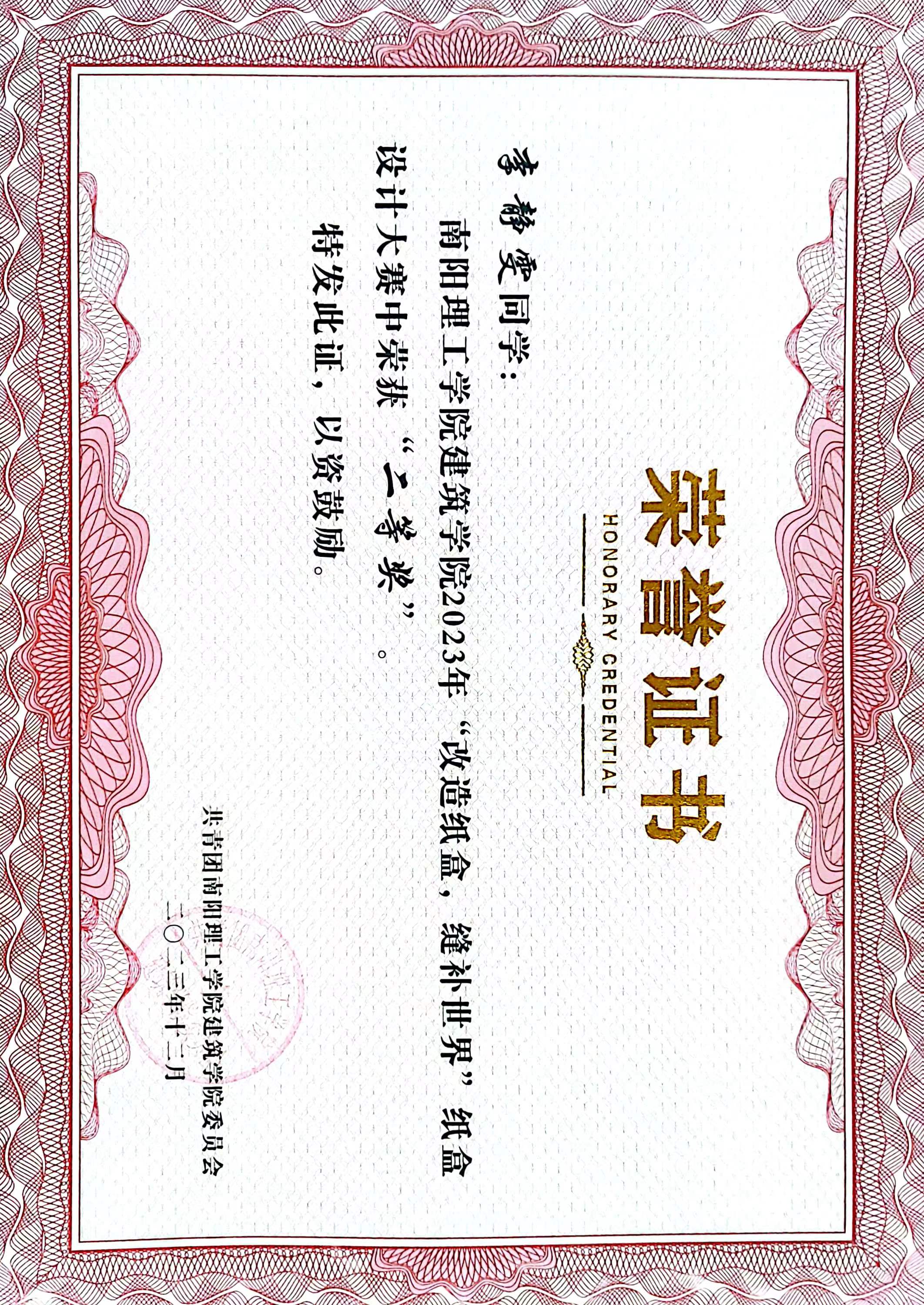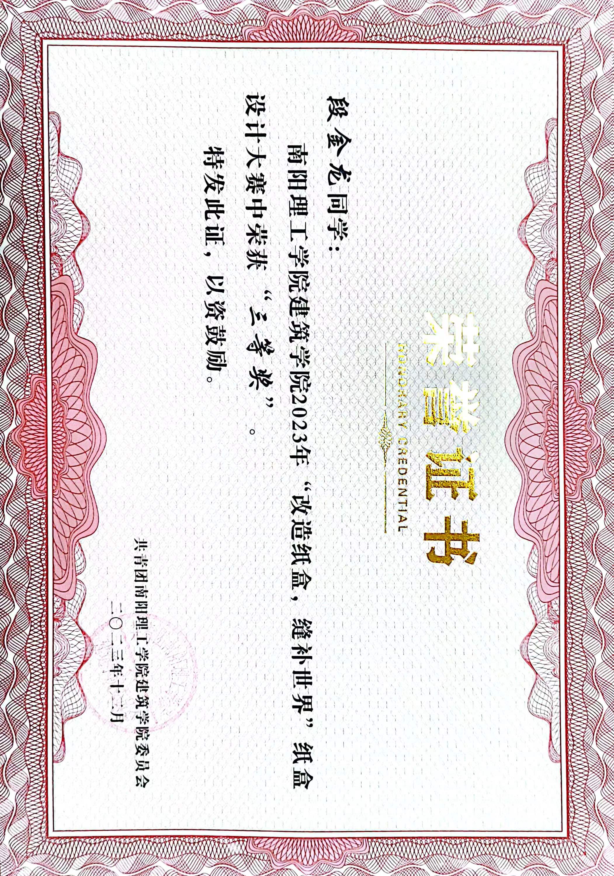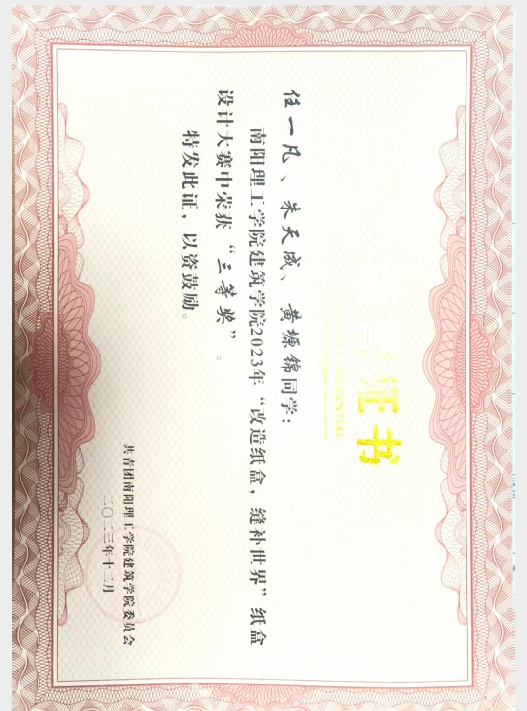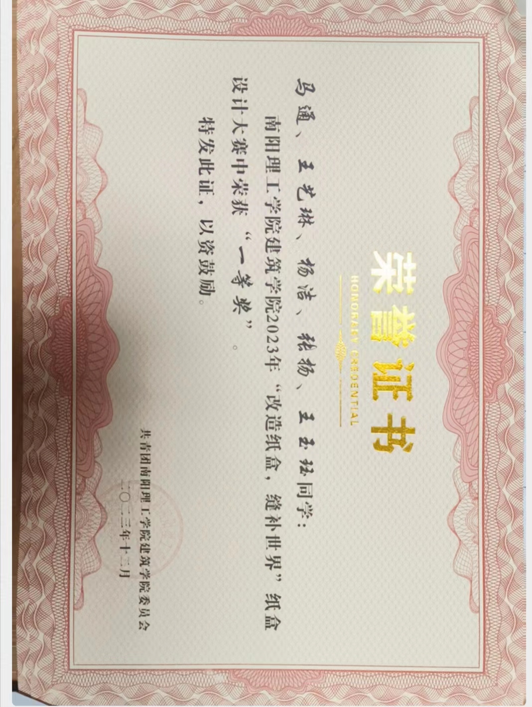 6686体育“改造纸盒,缝补世界”纸盒设计大赛获奖证书
