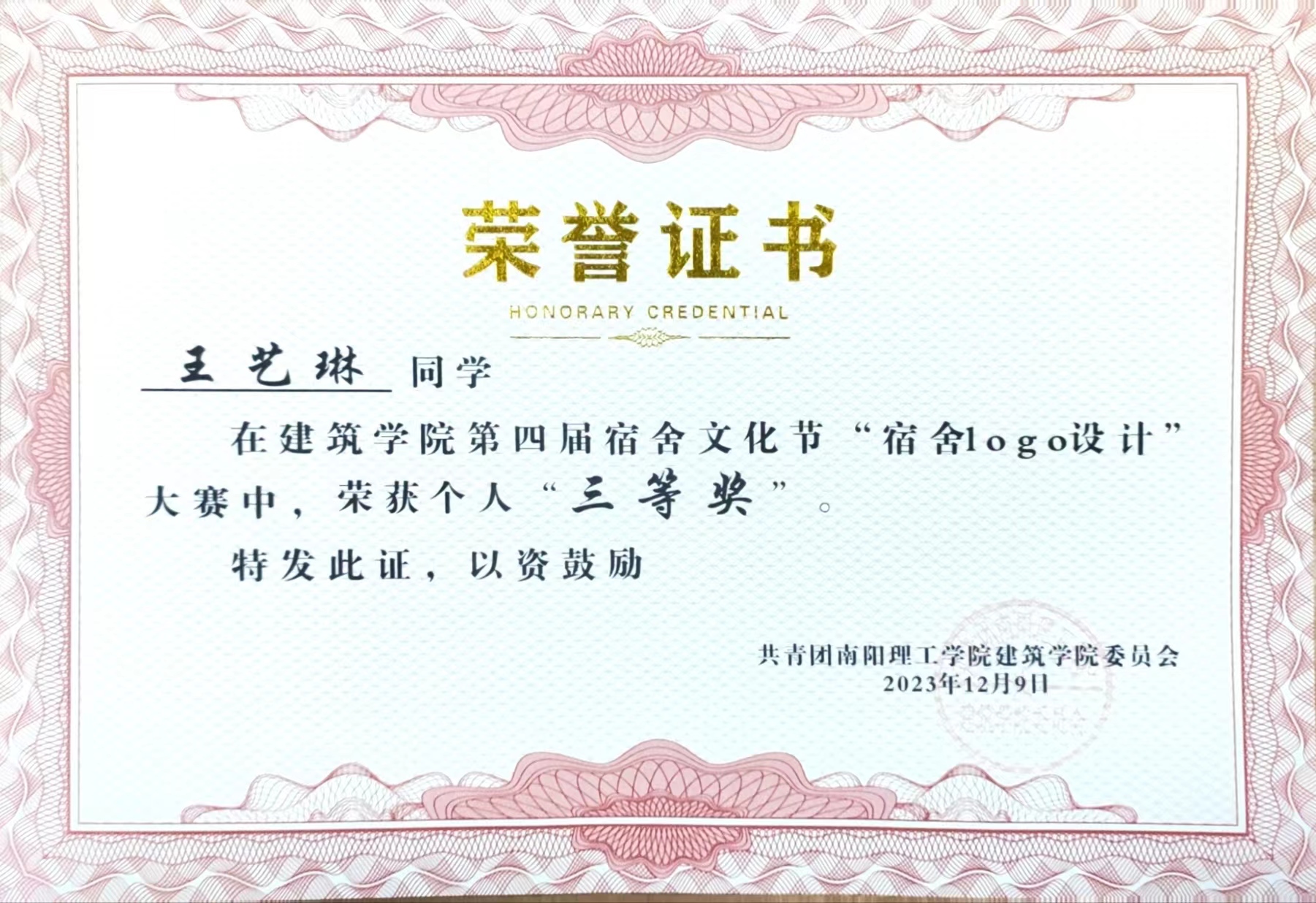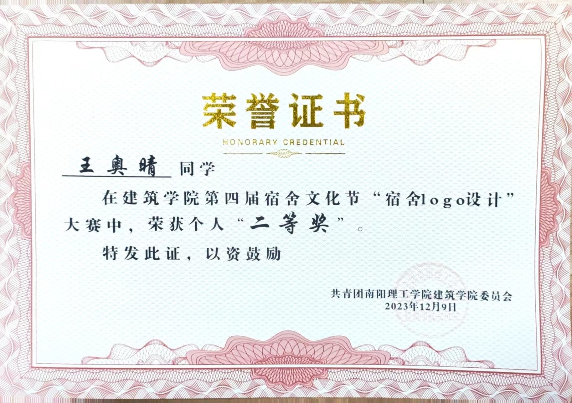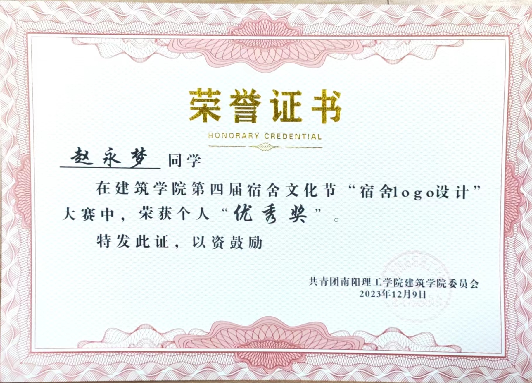 6686体育第四届宿舍文化节“宿舍logo设计”大赛获奖证书