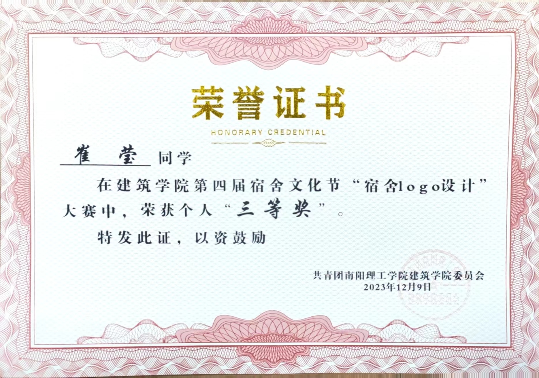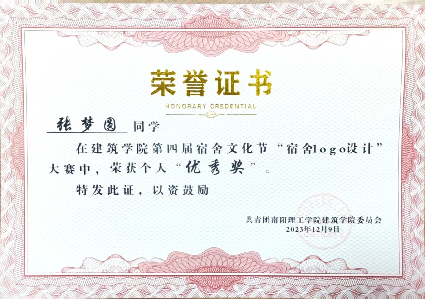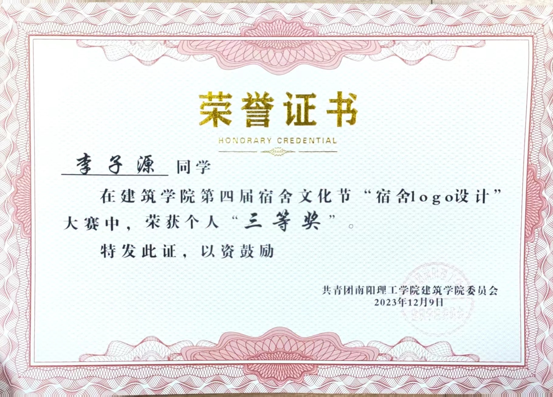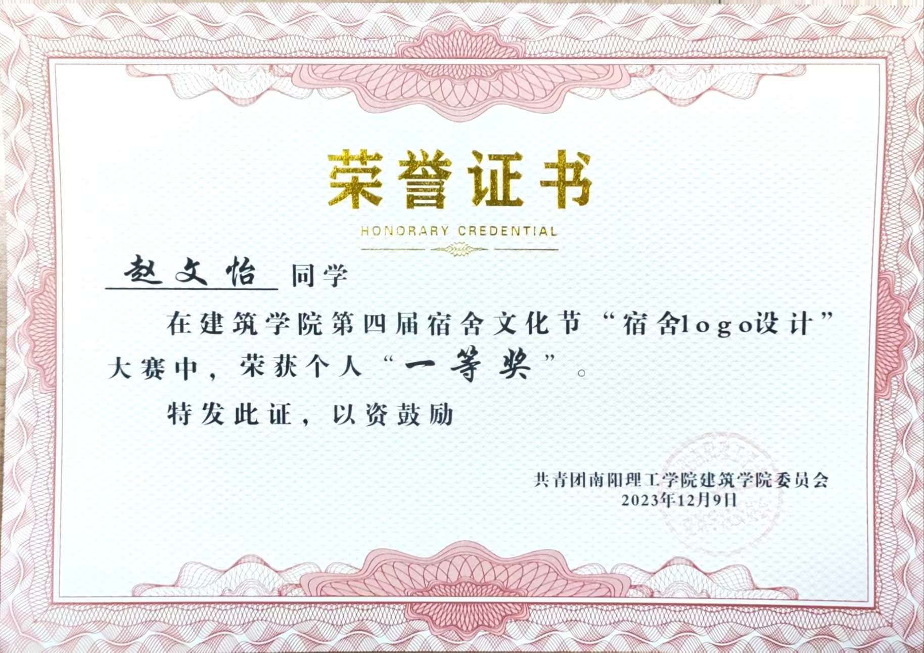 6686体育第四届宿舍文化节“宿舍logo设计”大赛获奖证书