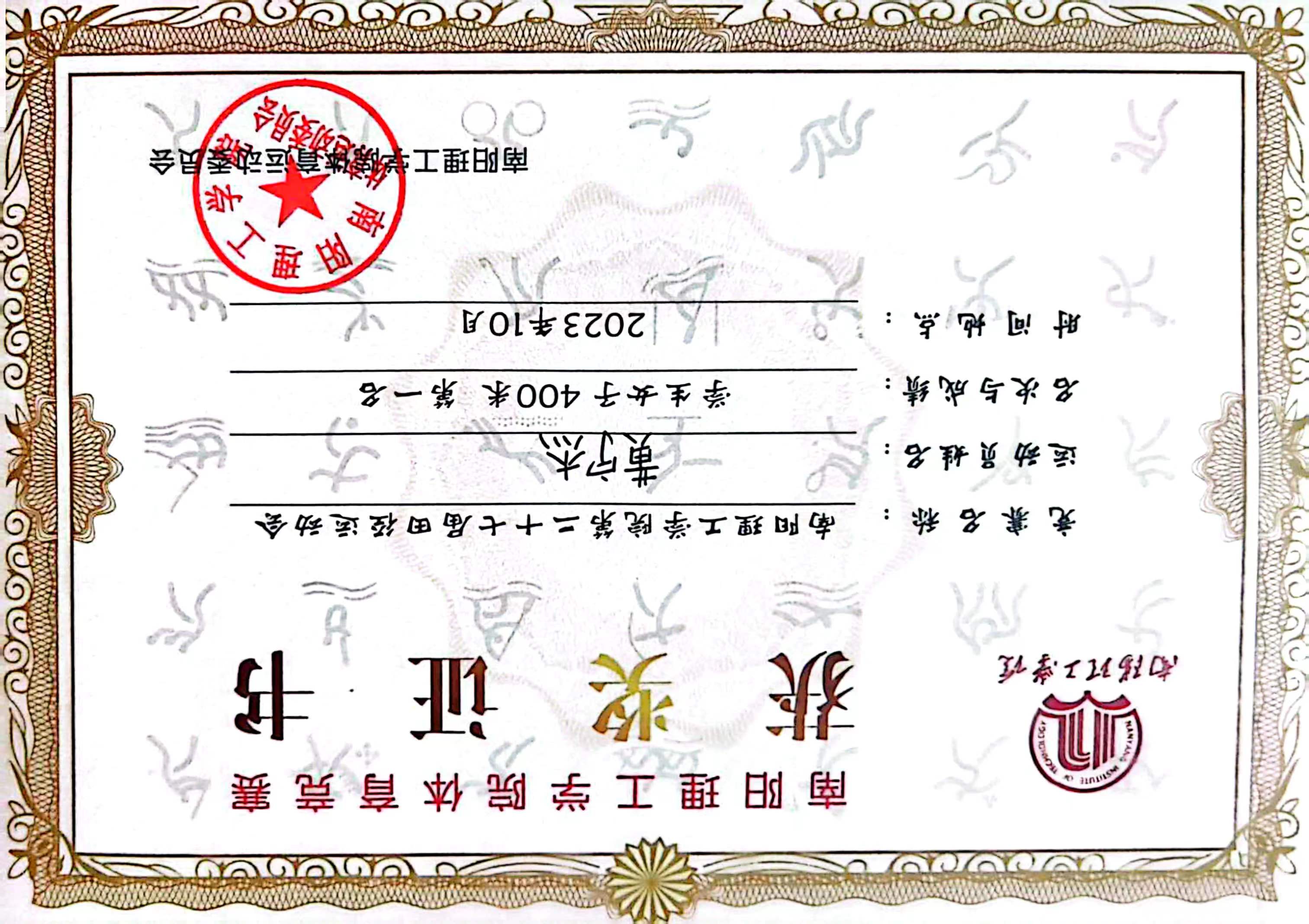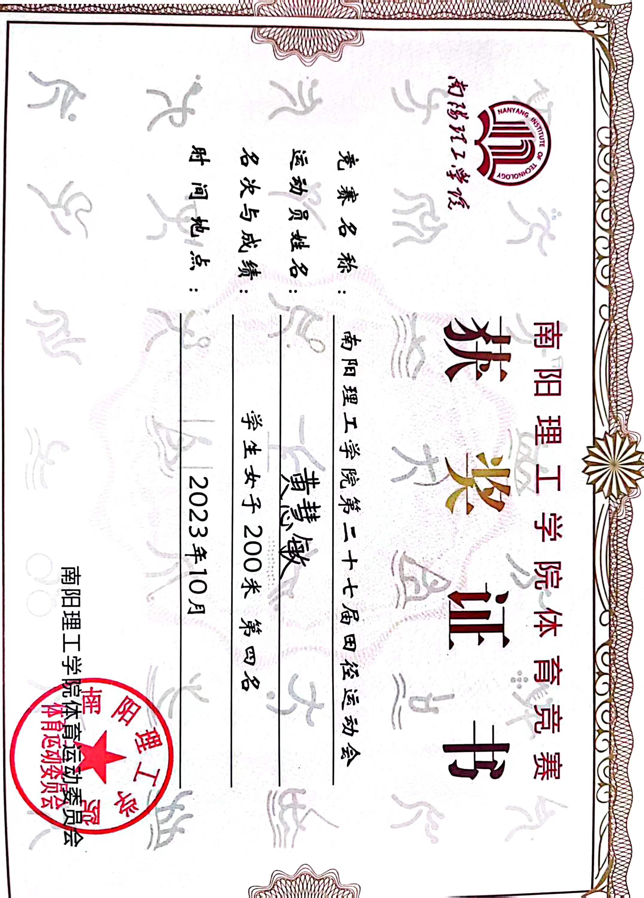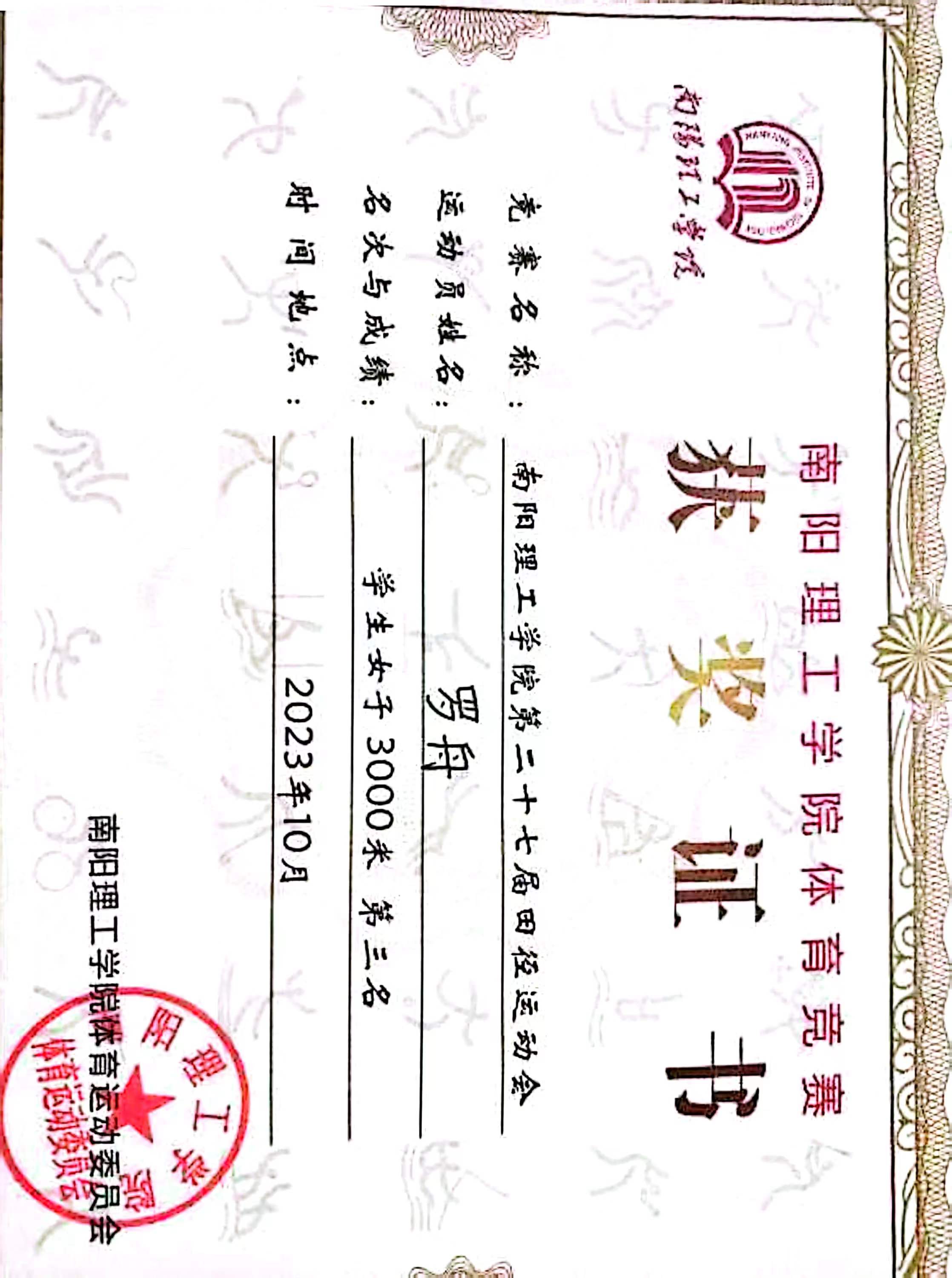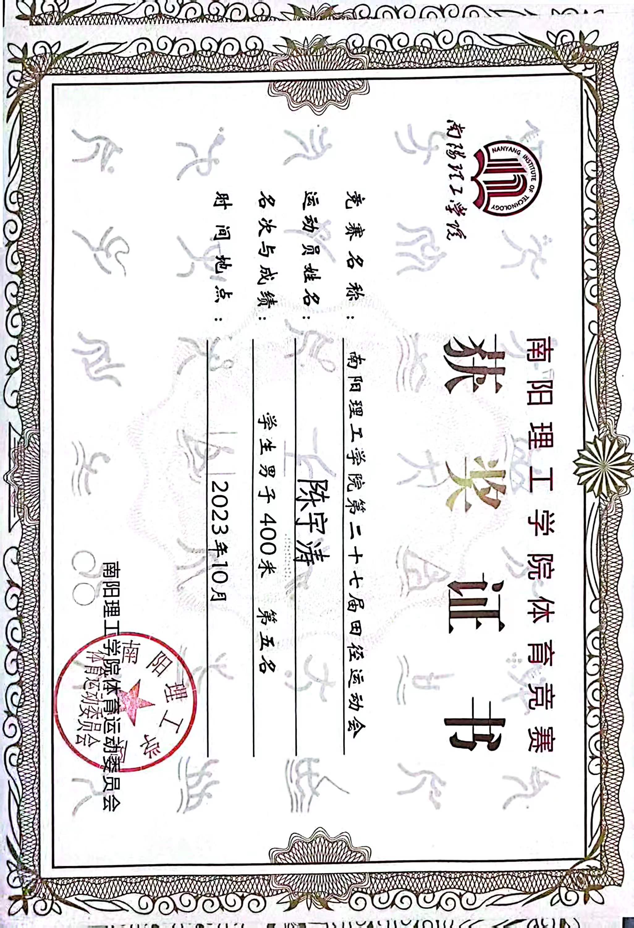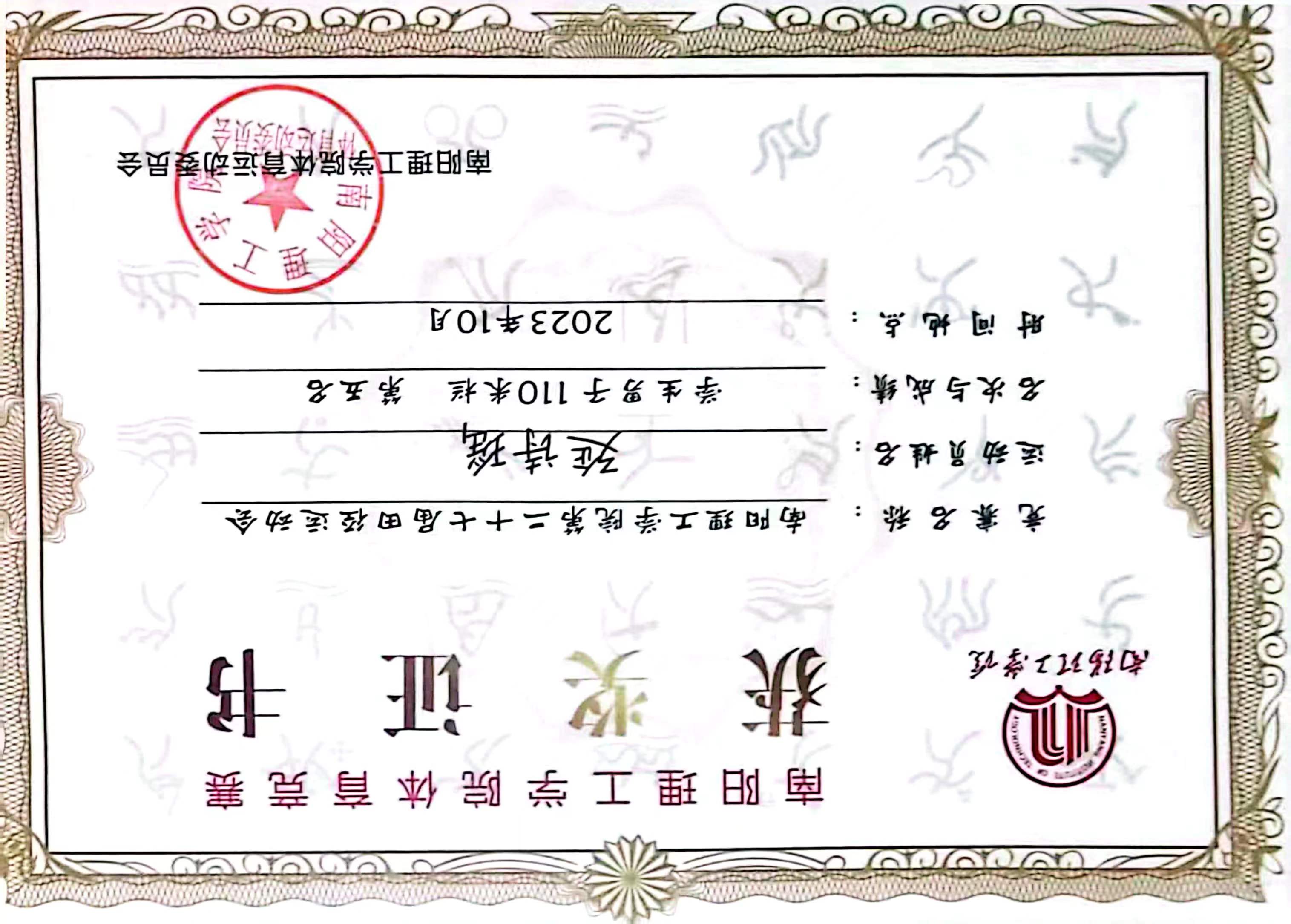南阳理工学院第27届田径运动会6686体育获奖证书