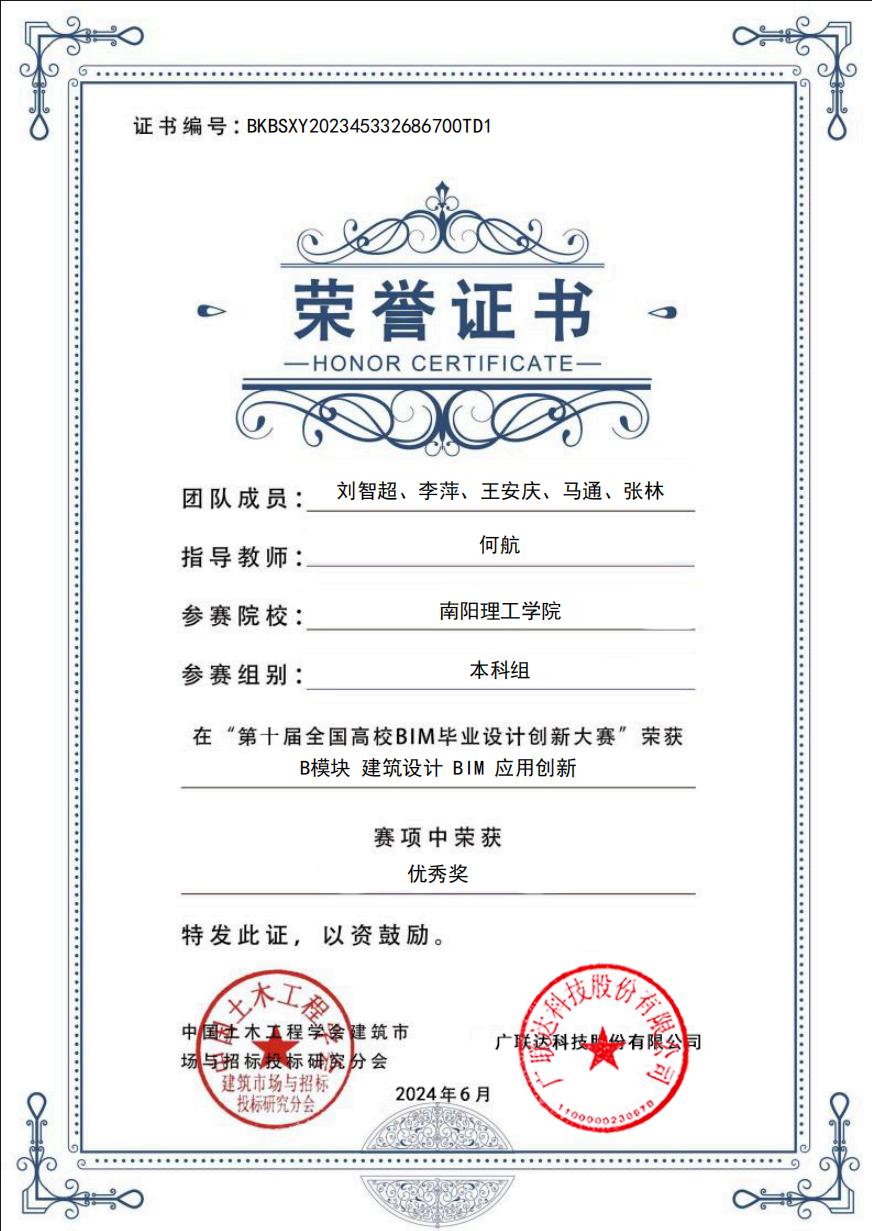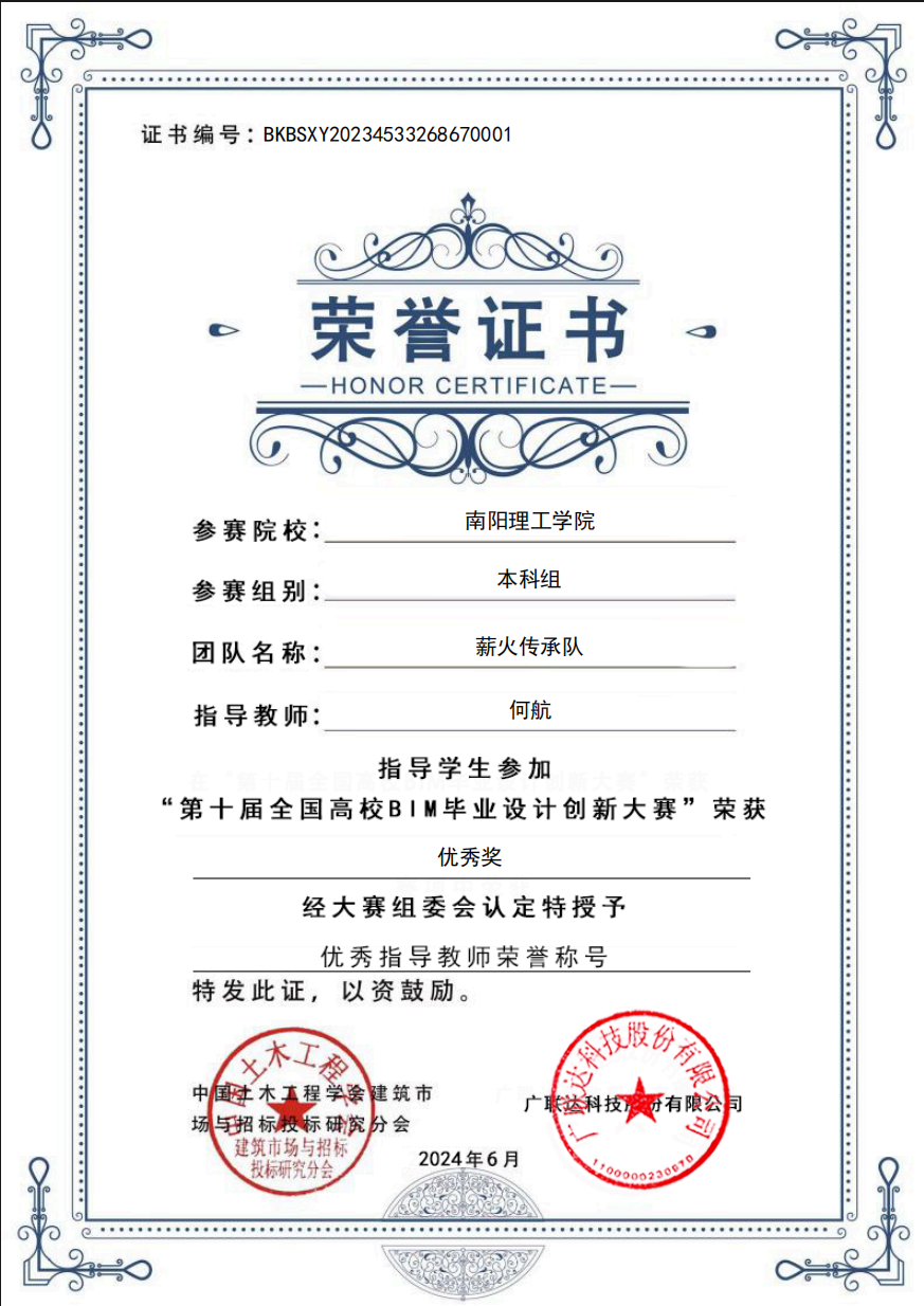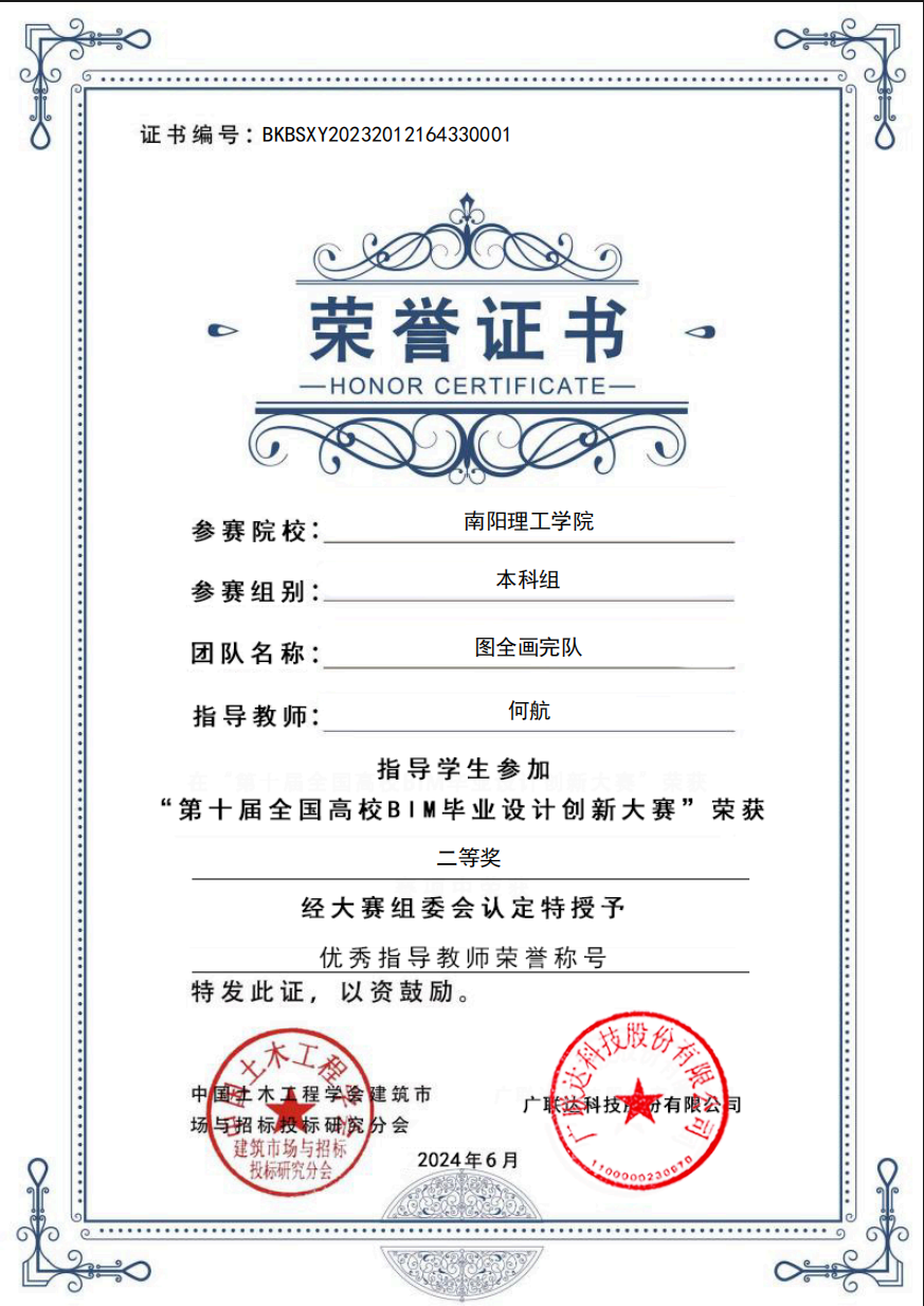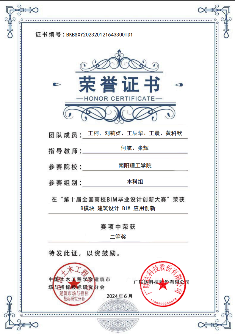 第十届全国高校BIM毕业设计创新大赛获奖证书