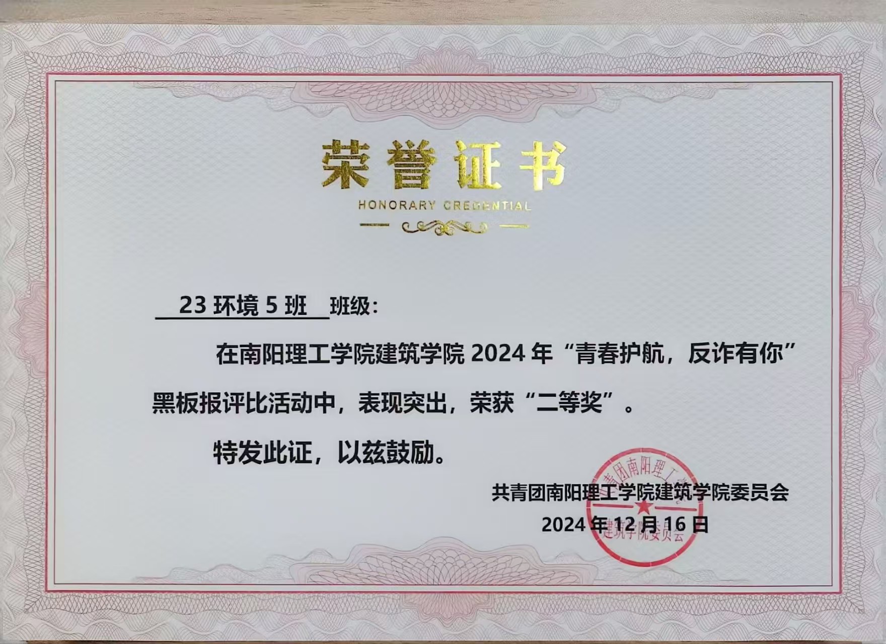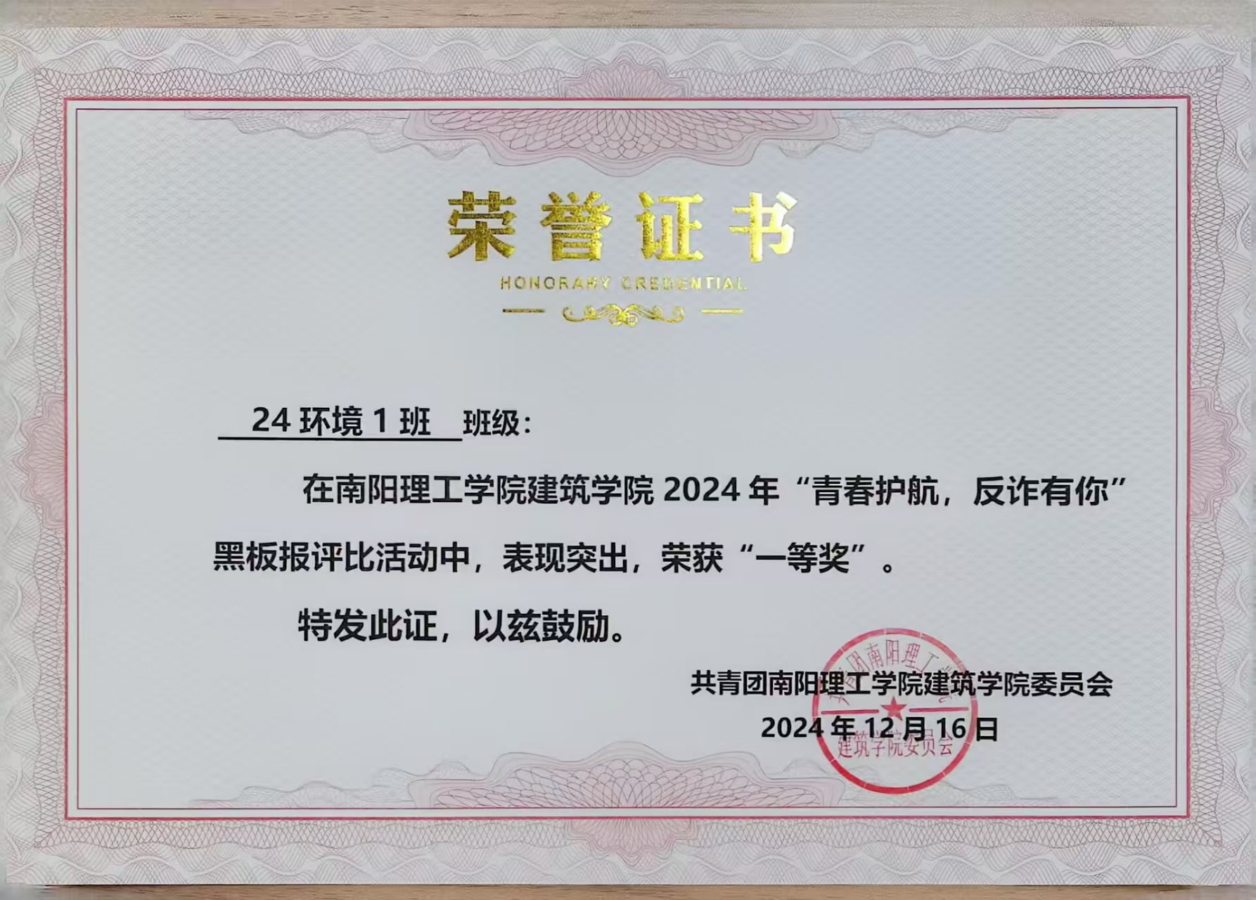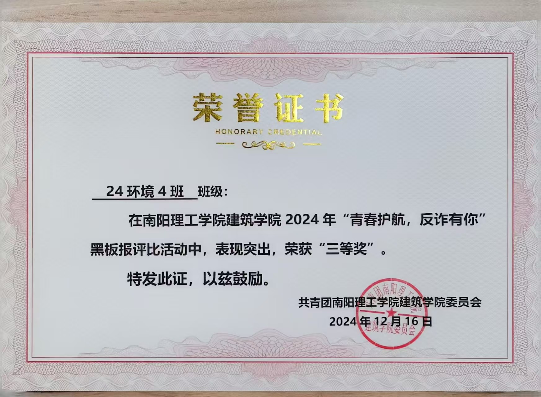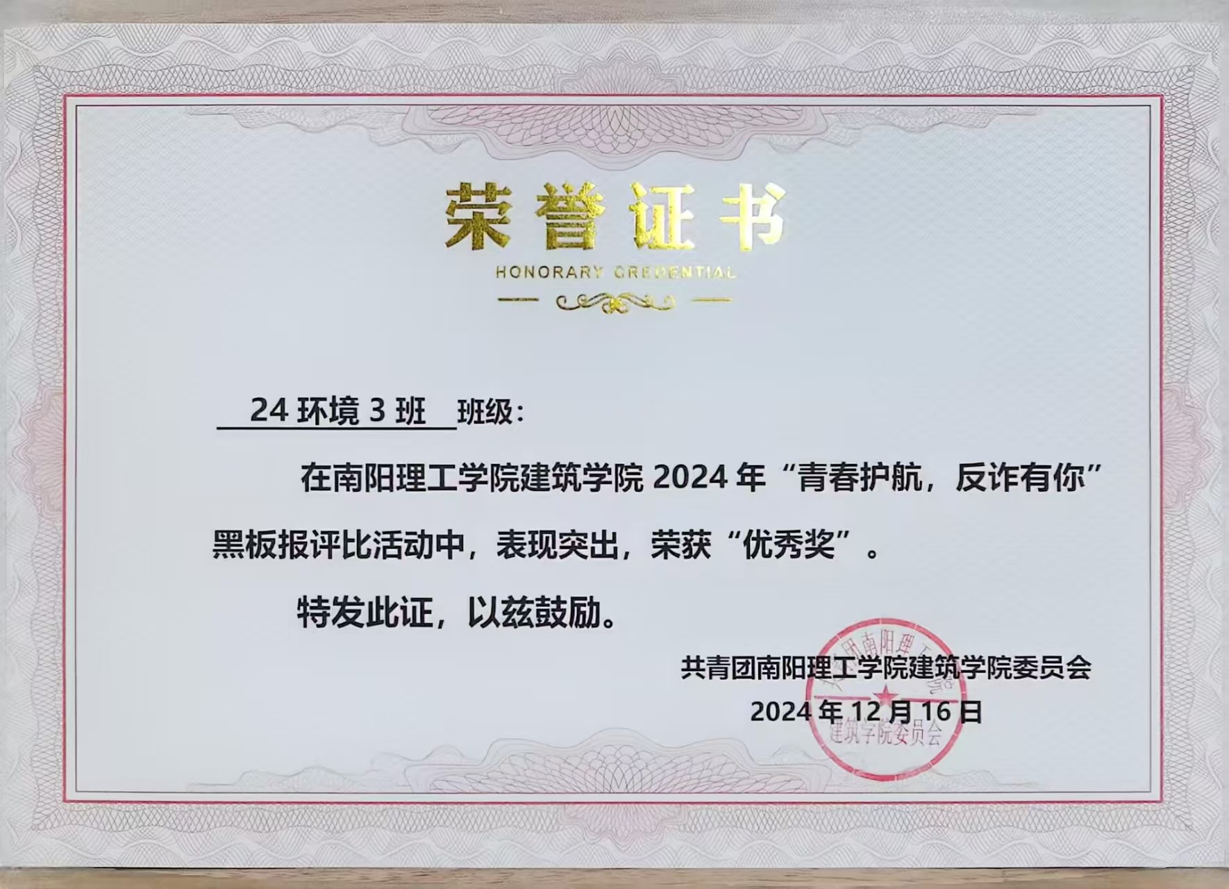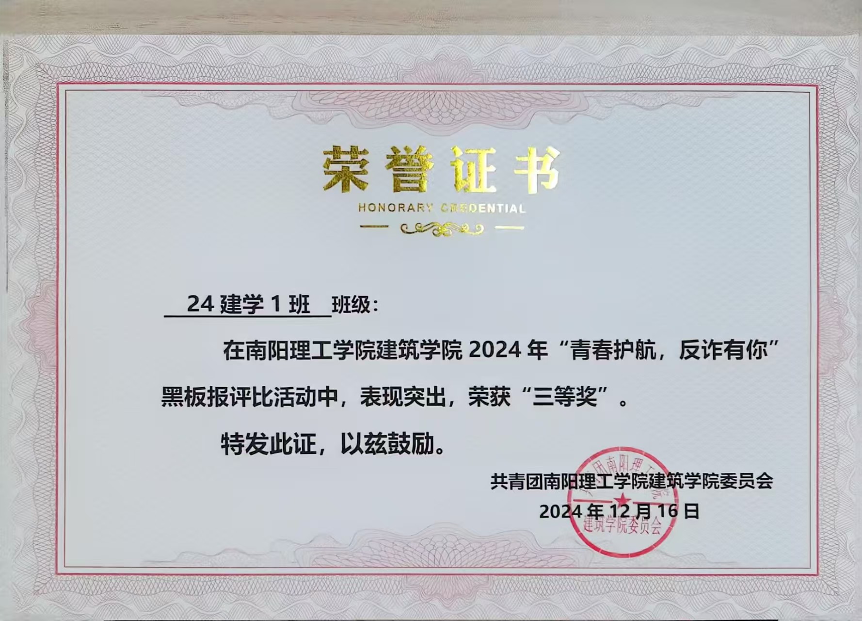 6686体育2024年“青春护航,反诈有你”黑板报评比活动获奖证书