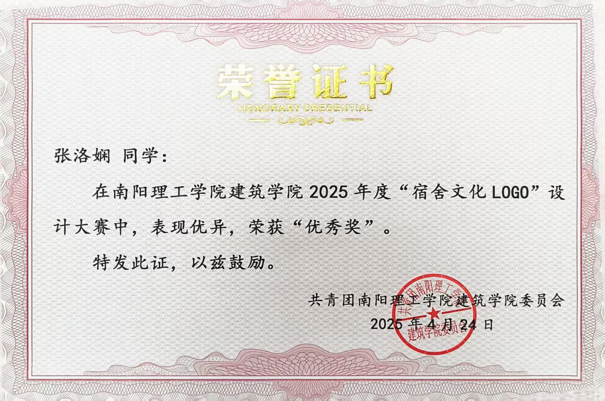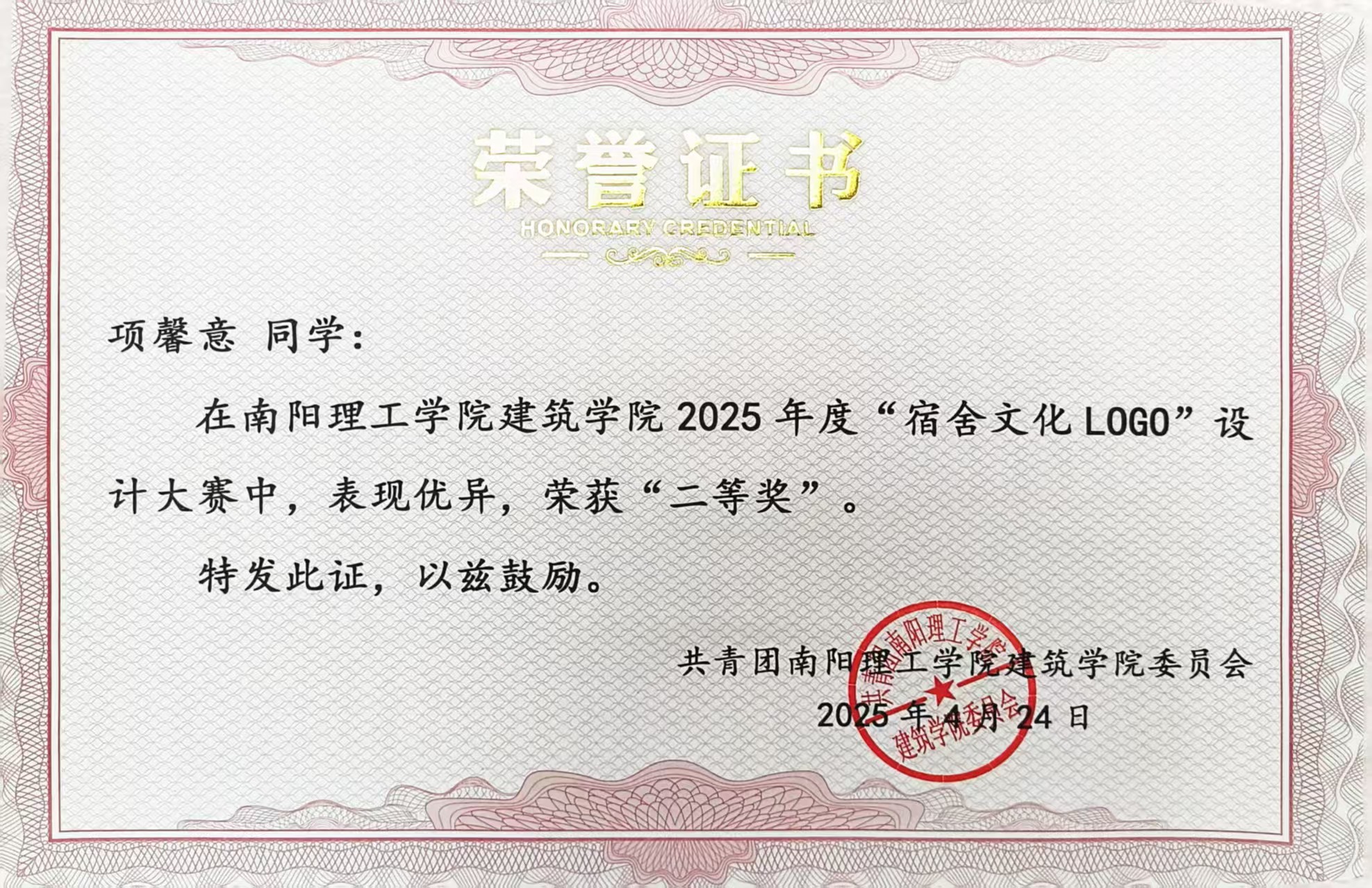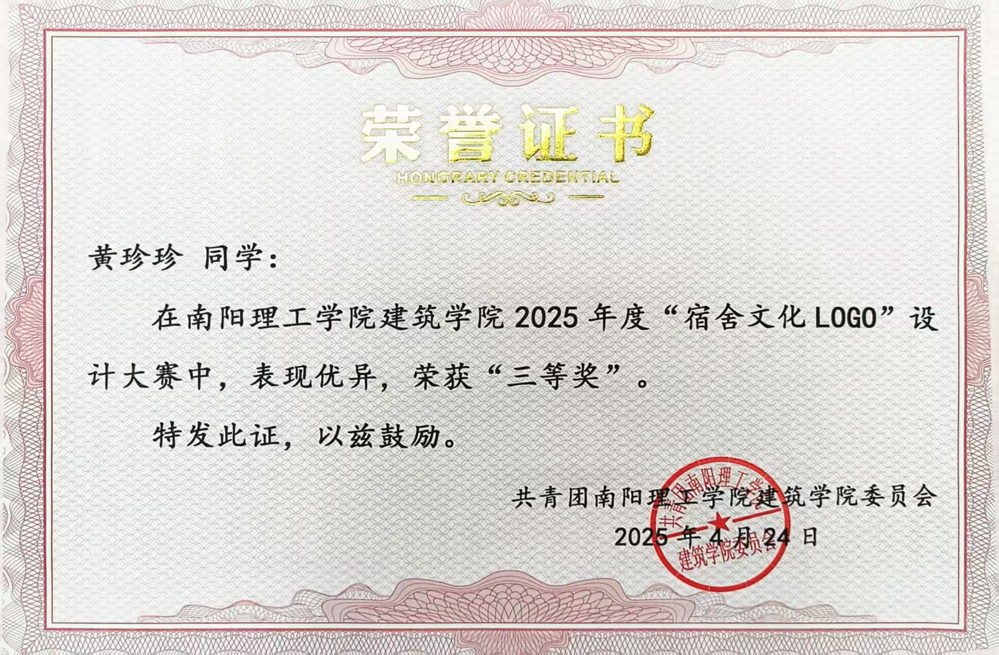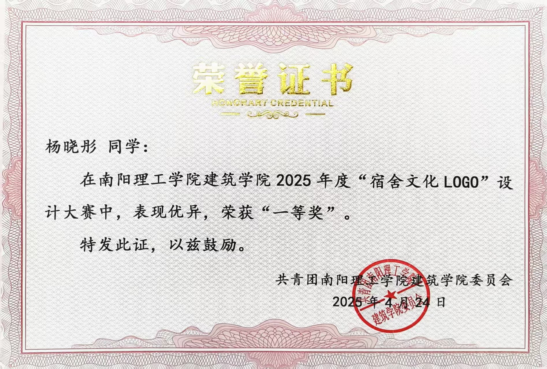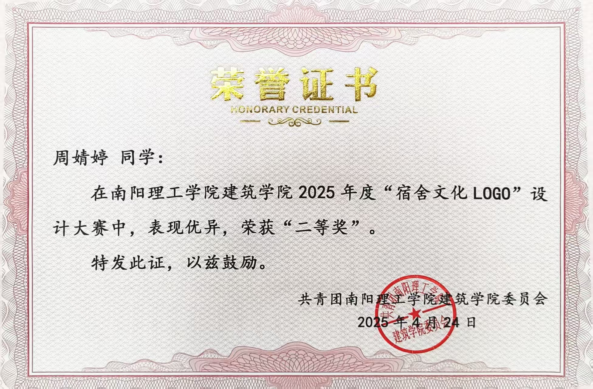 6686体育2025年度“宿舍文化L0G0”设计大赛荣誉证书
