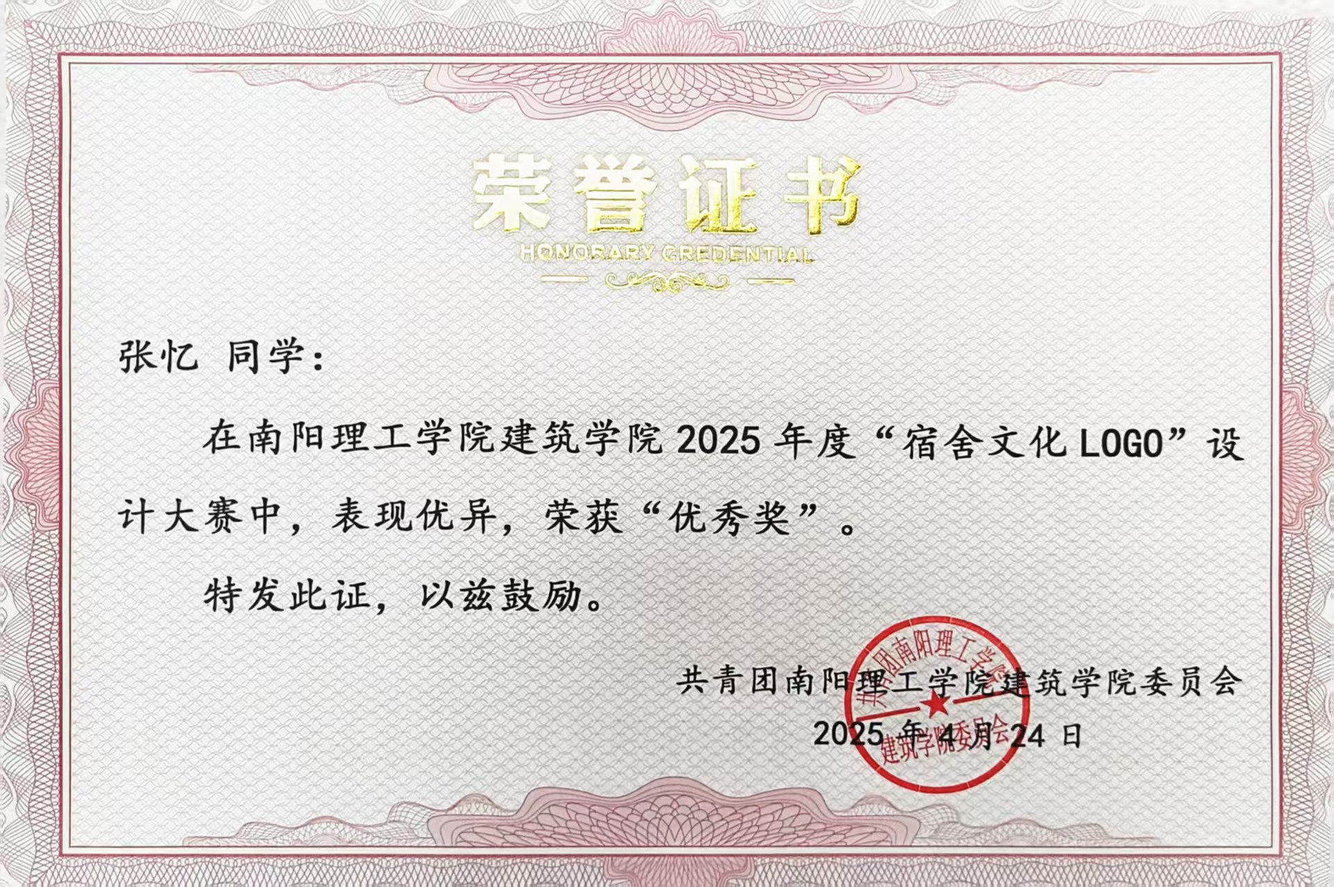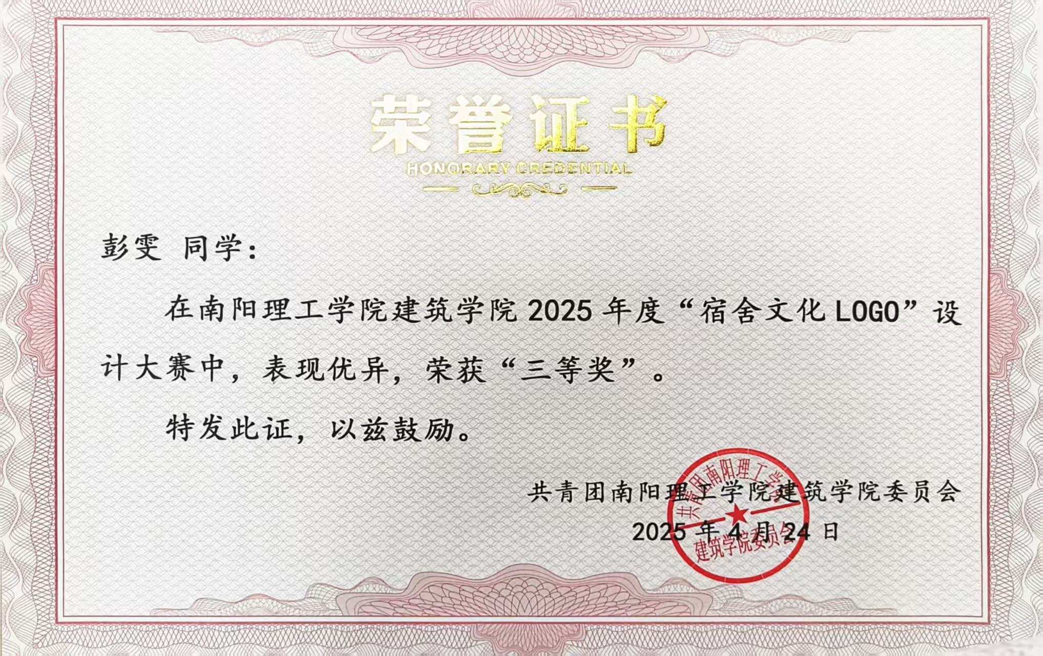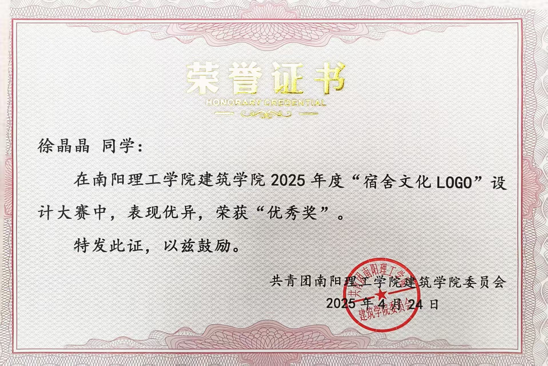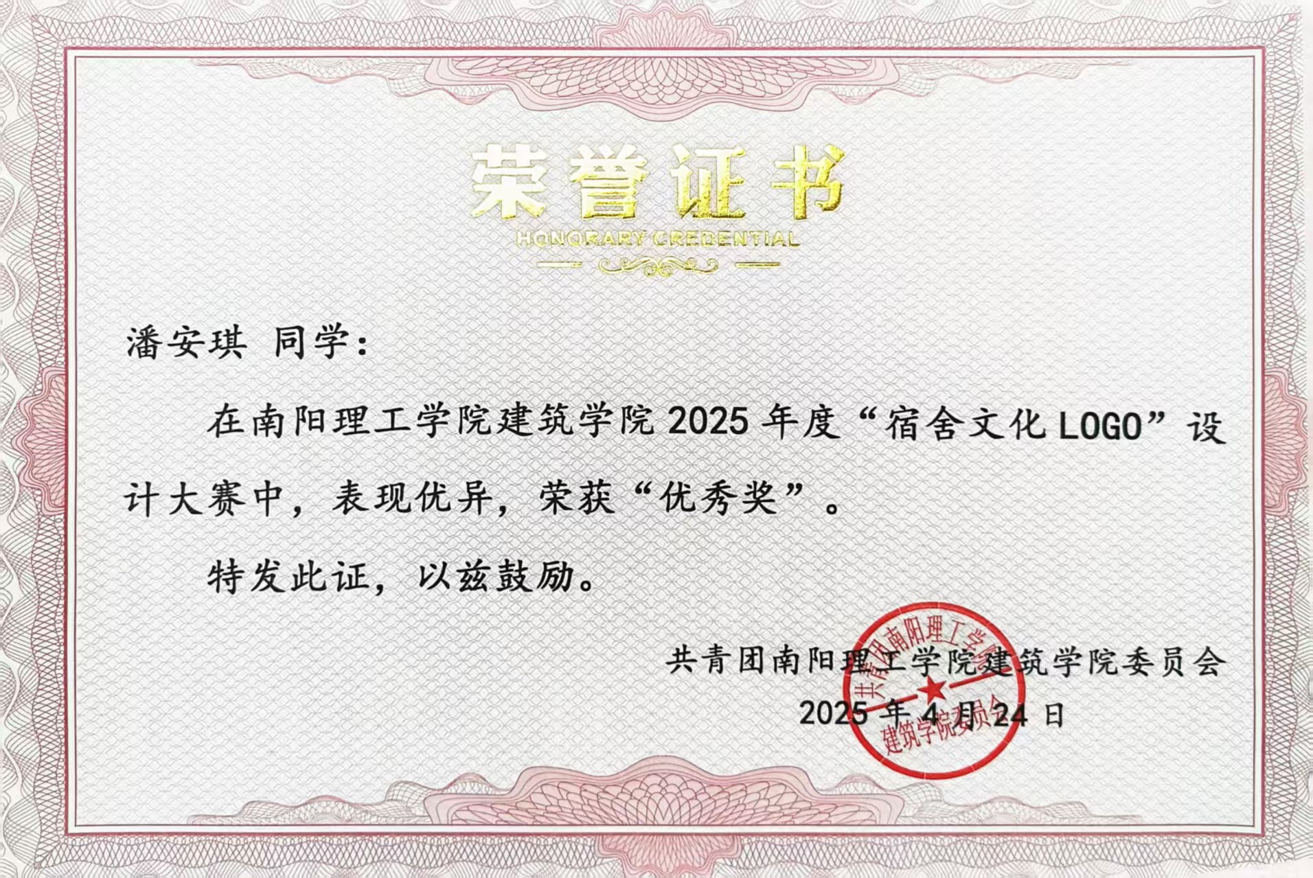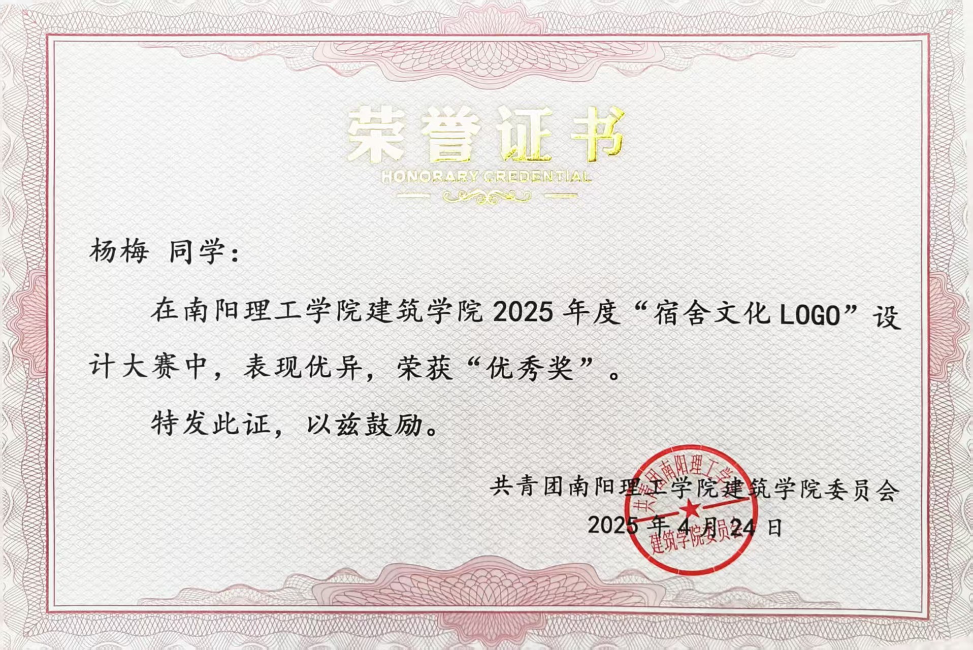 6686体育2025年度“宿舍文化L0G0”设计大赛荣誉证书