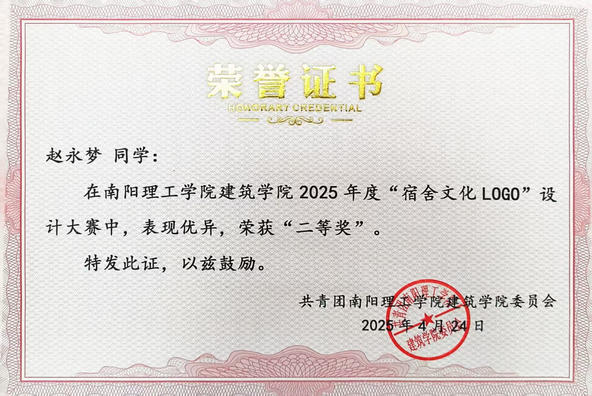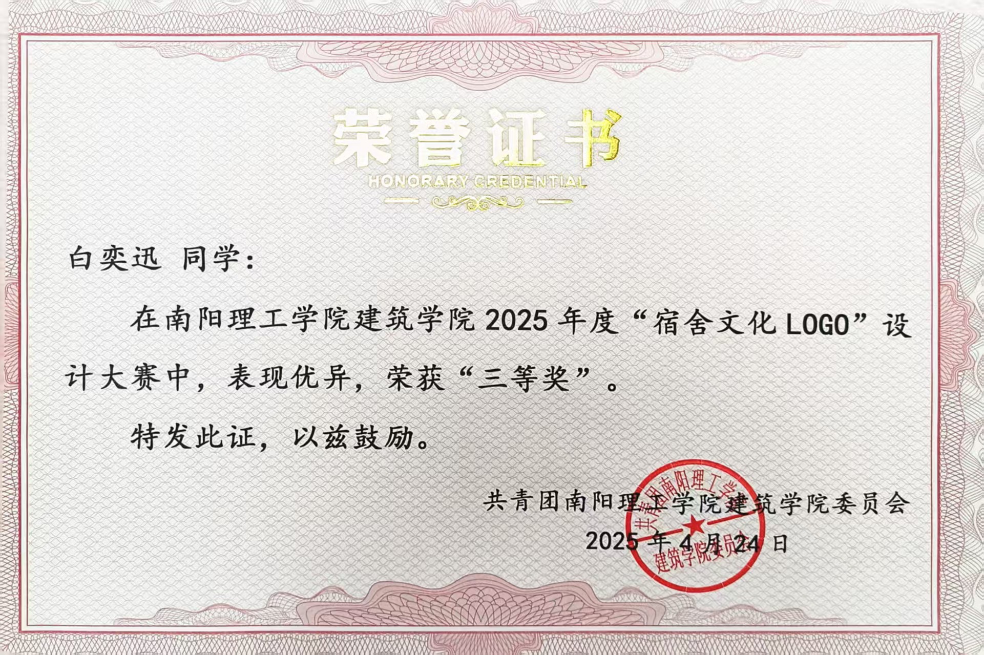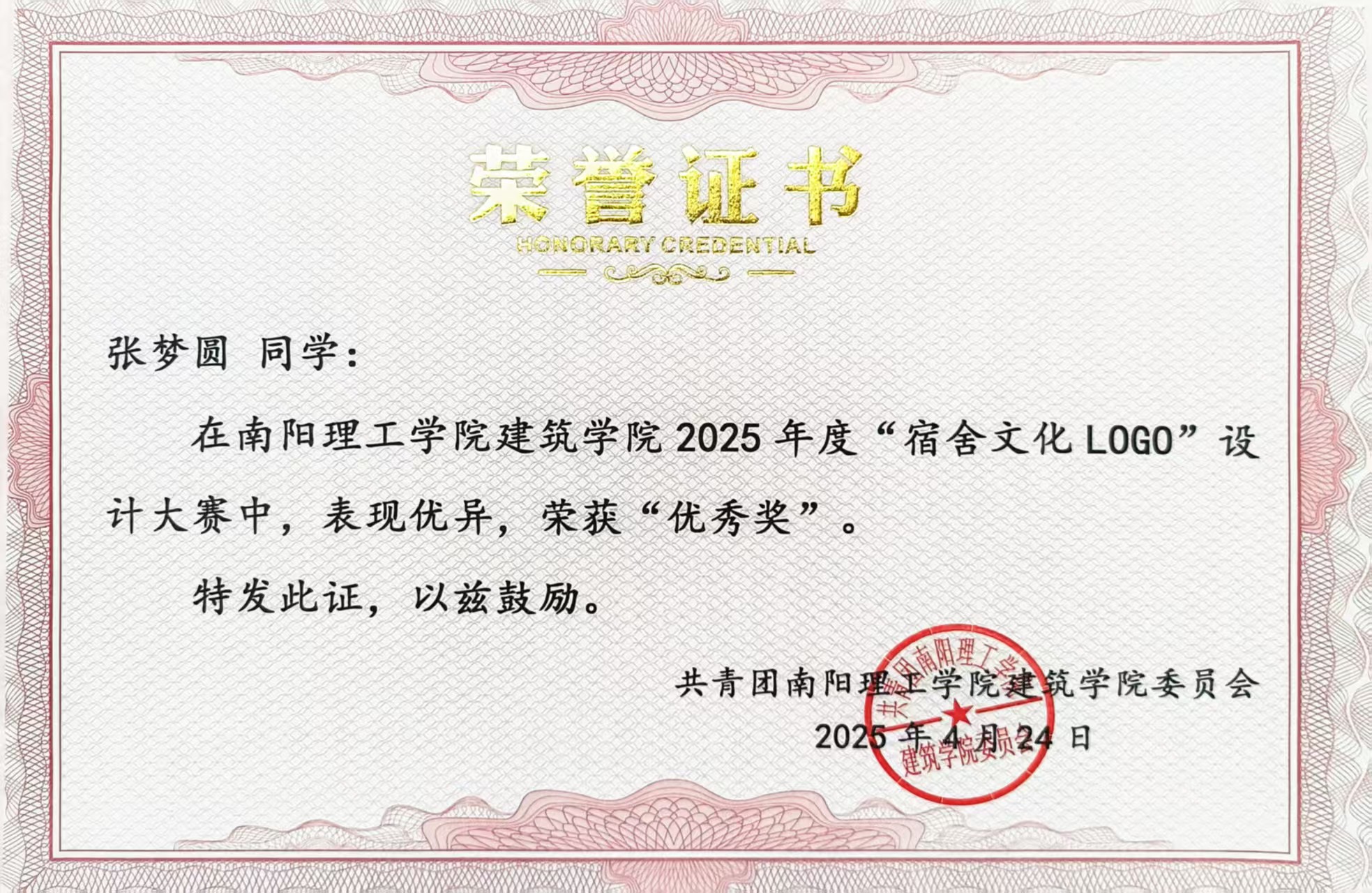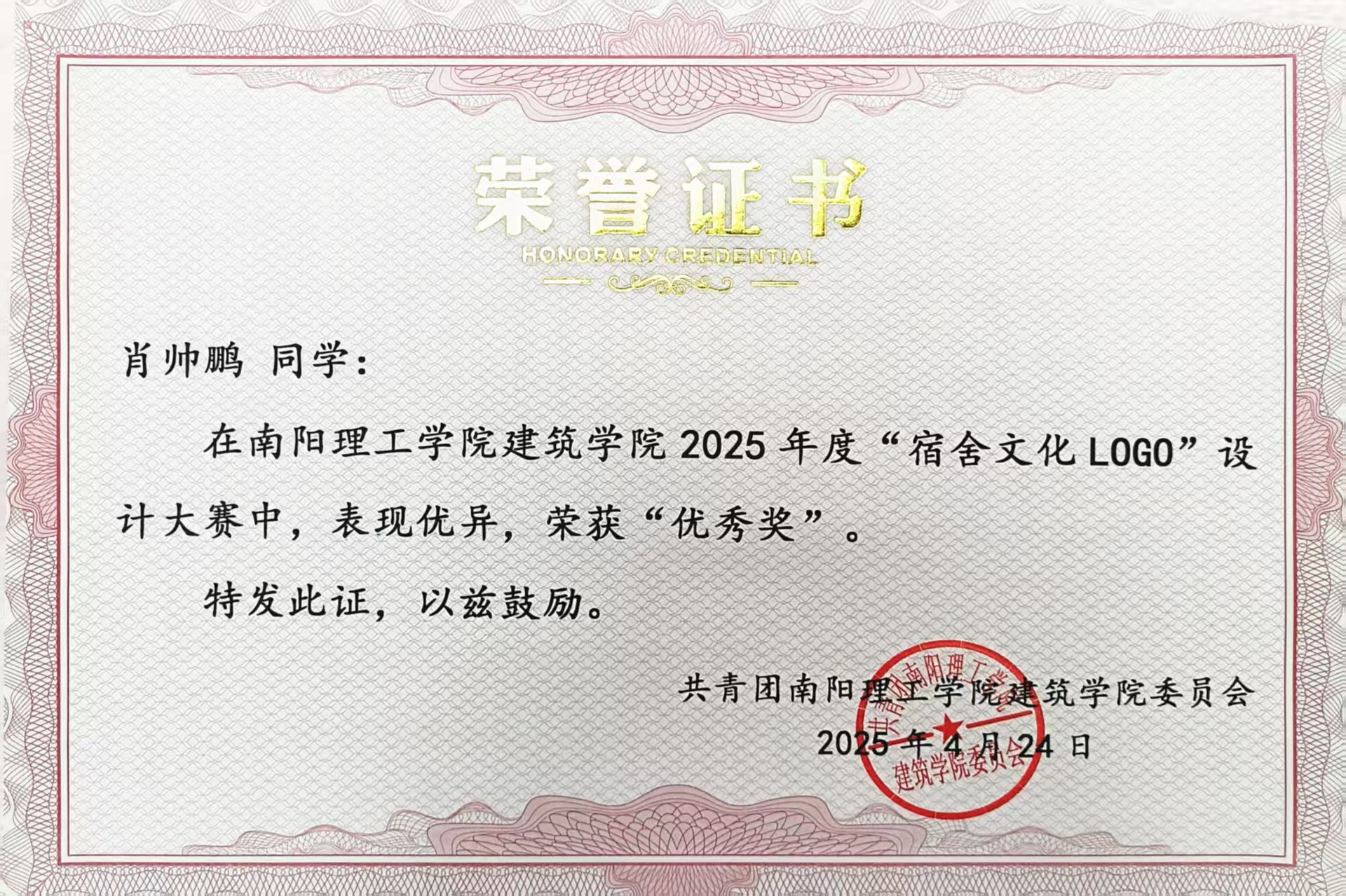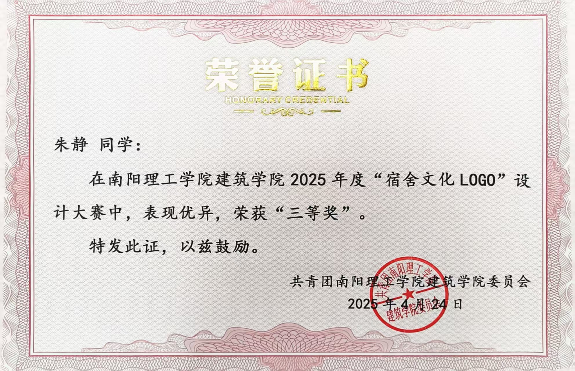 6686体育2025年度“宿舍文化L0G0”设计大赛荣誉证书
