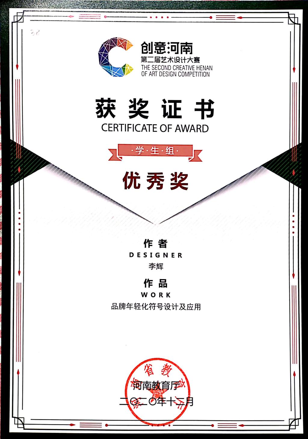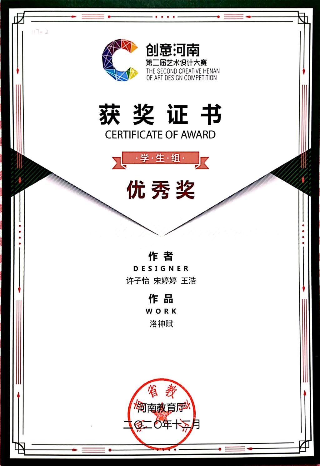 创意河南第二届艺术设计大赛获奖证书