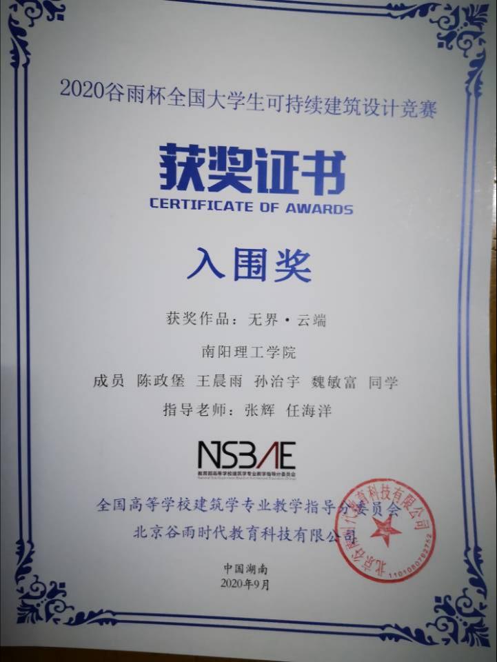 (通讯员 田真 袁芳梅)近日,第十四届“谷雨杯”全国大学生可持续建筑设计竞赛获奖名单公布,我院四位参赛同学组建的“头发总与我作对”团队凭借作品“无界·云端”荣获优秀奖。