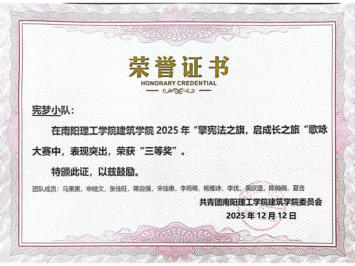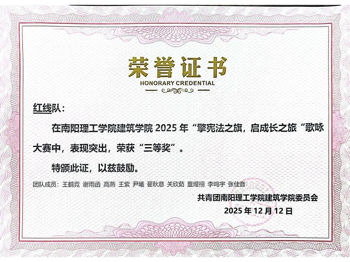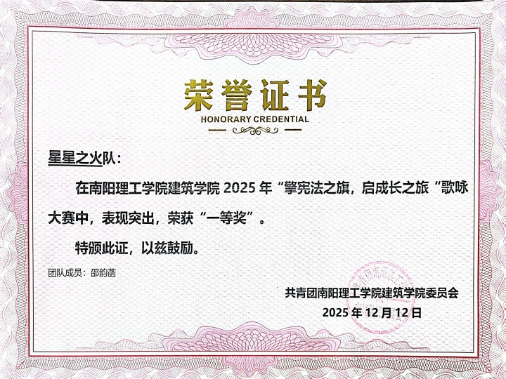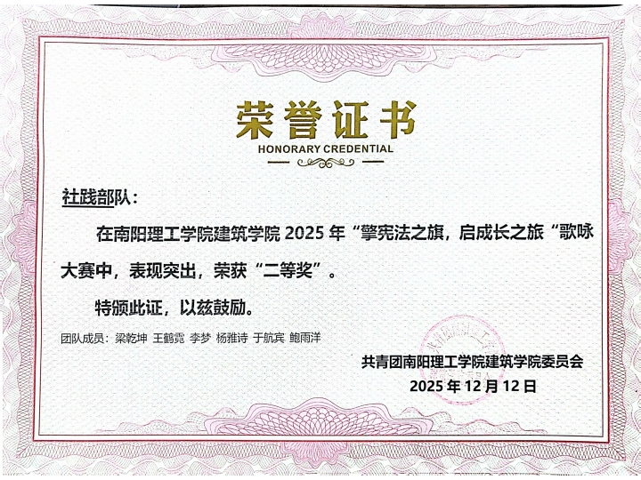6686体育2025年“擎宪法之旗,启成长之旅“歌咏大赛获奖证书