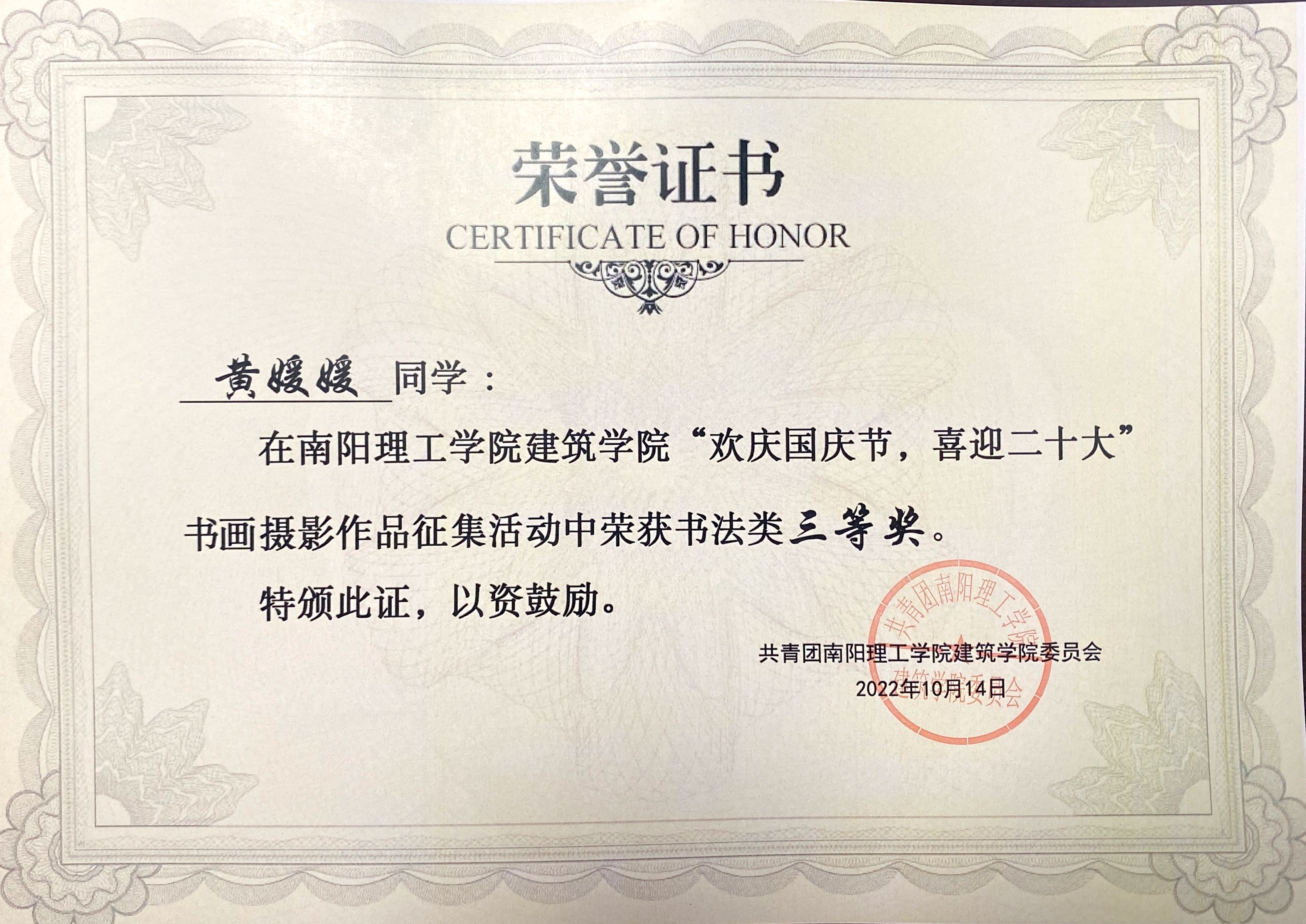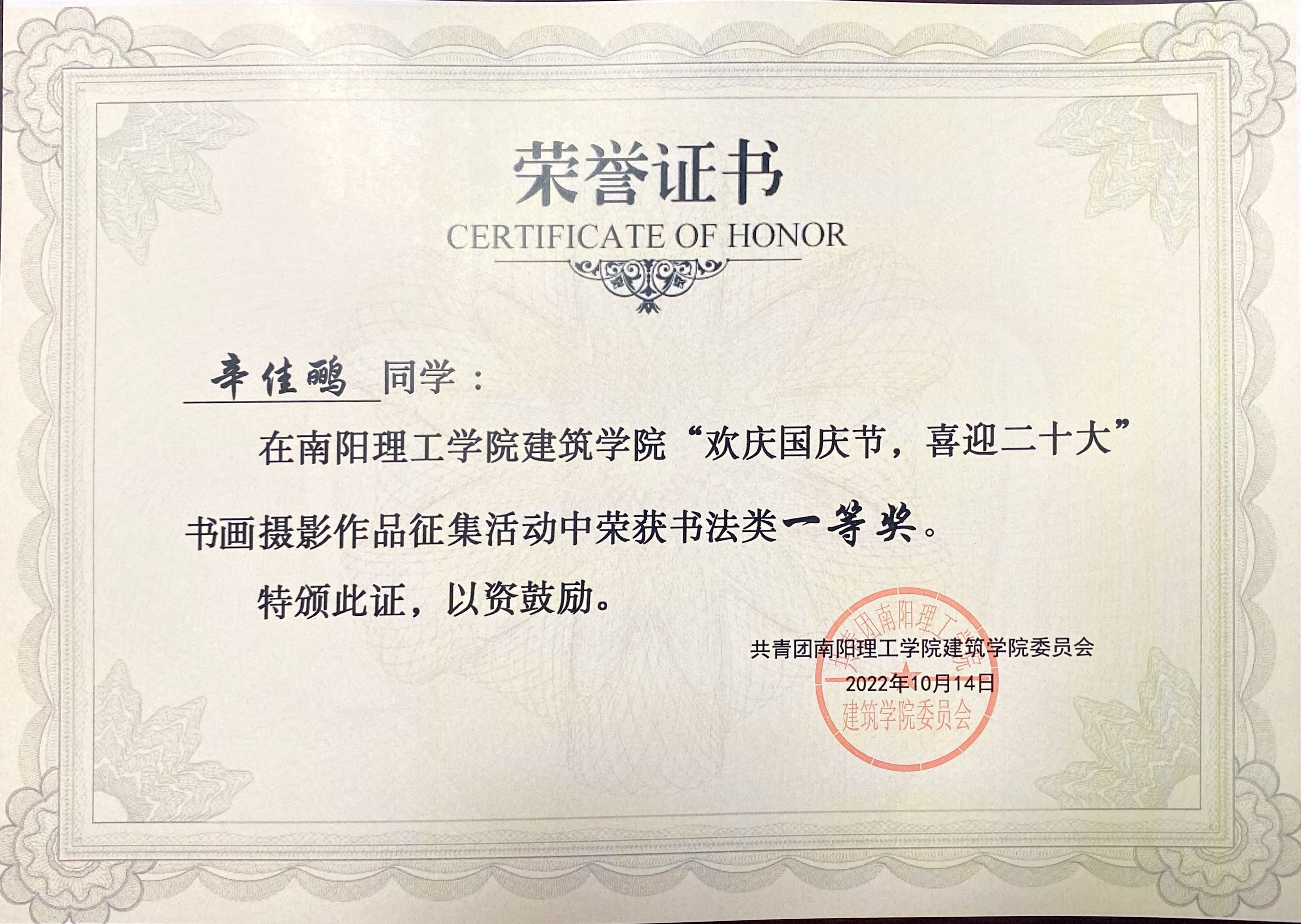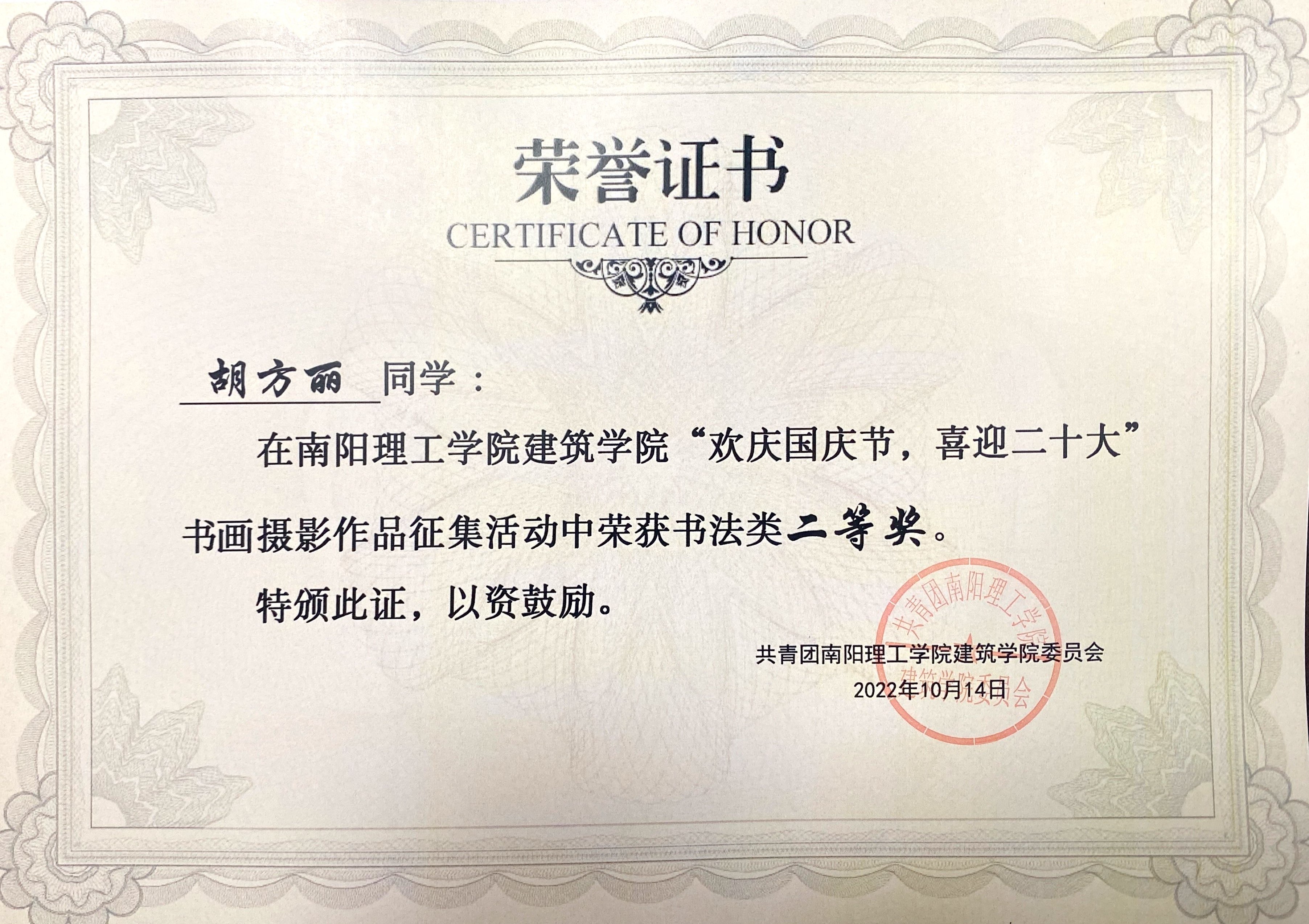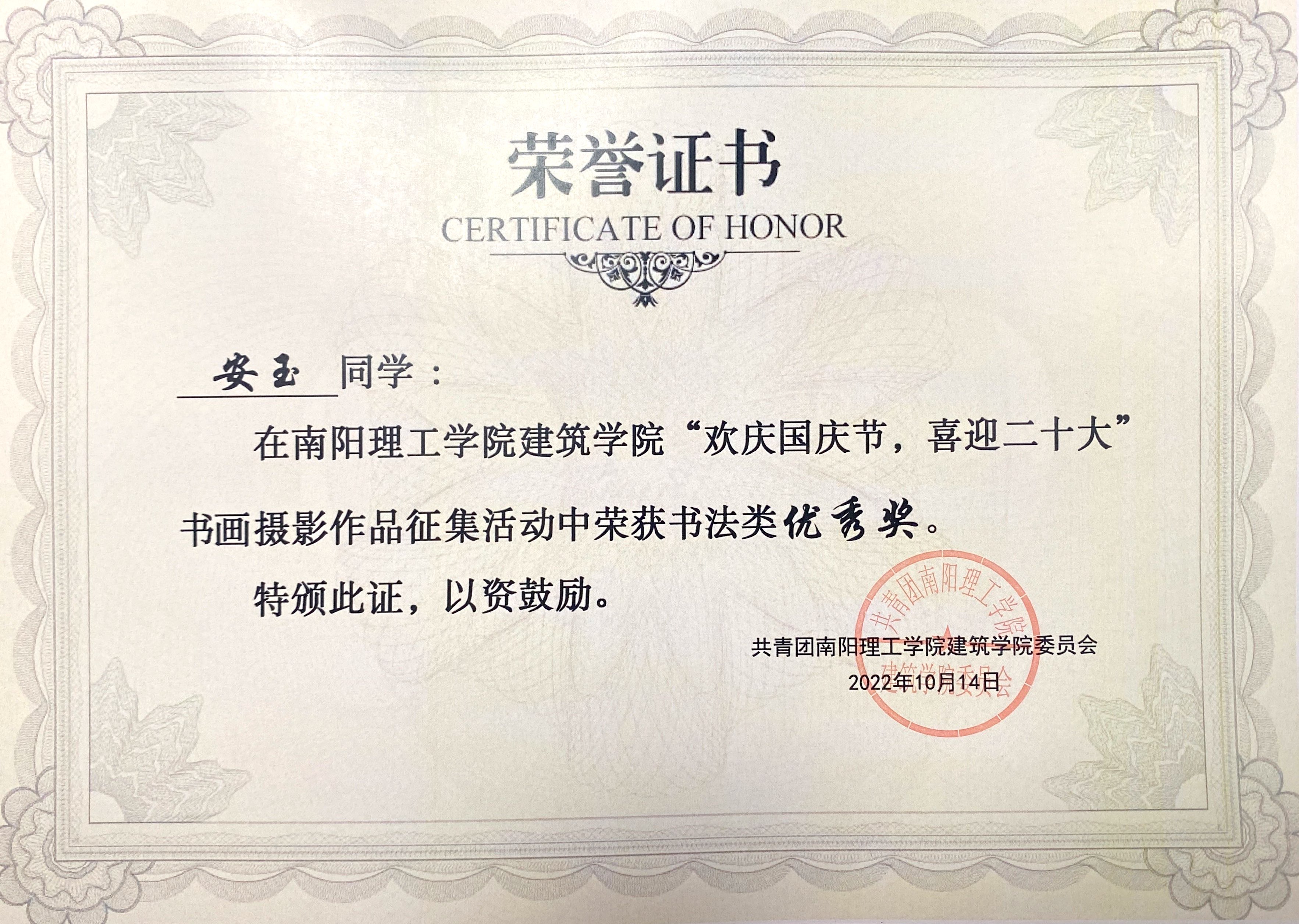 欢庆国庆节,喜迎二十大作品征集活动获奖证书