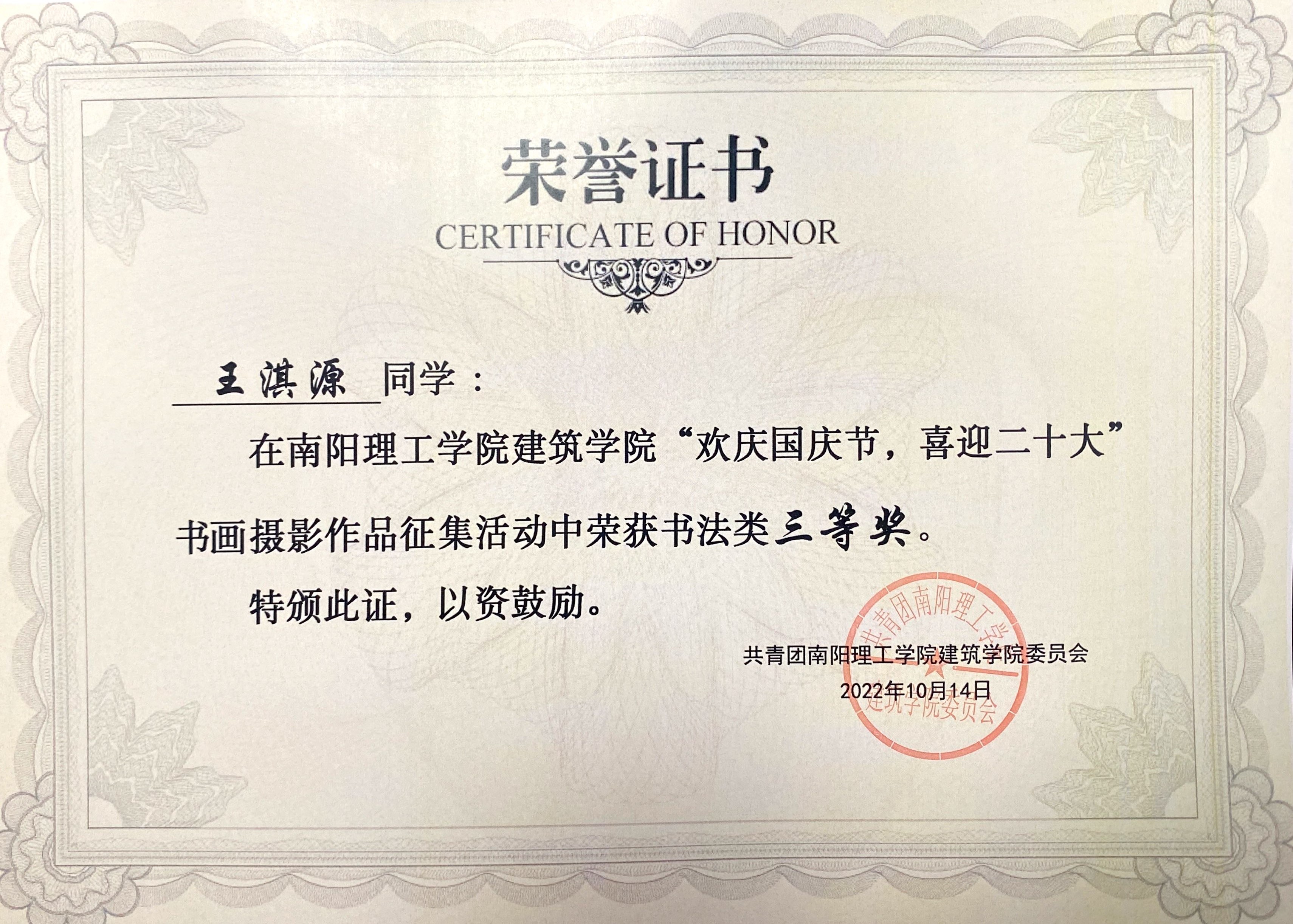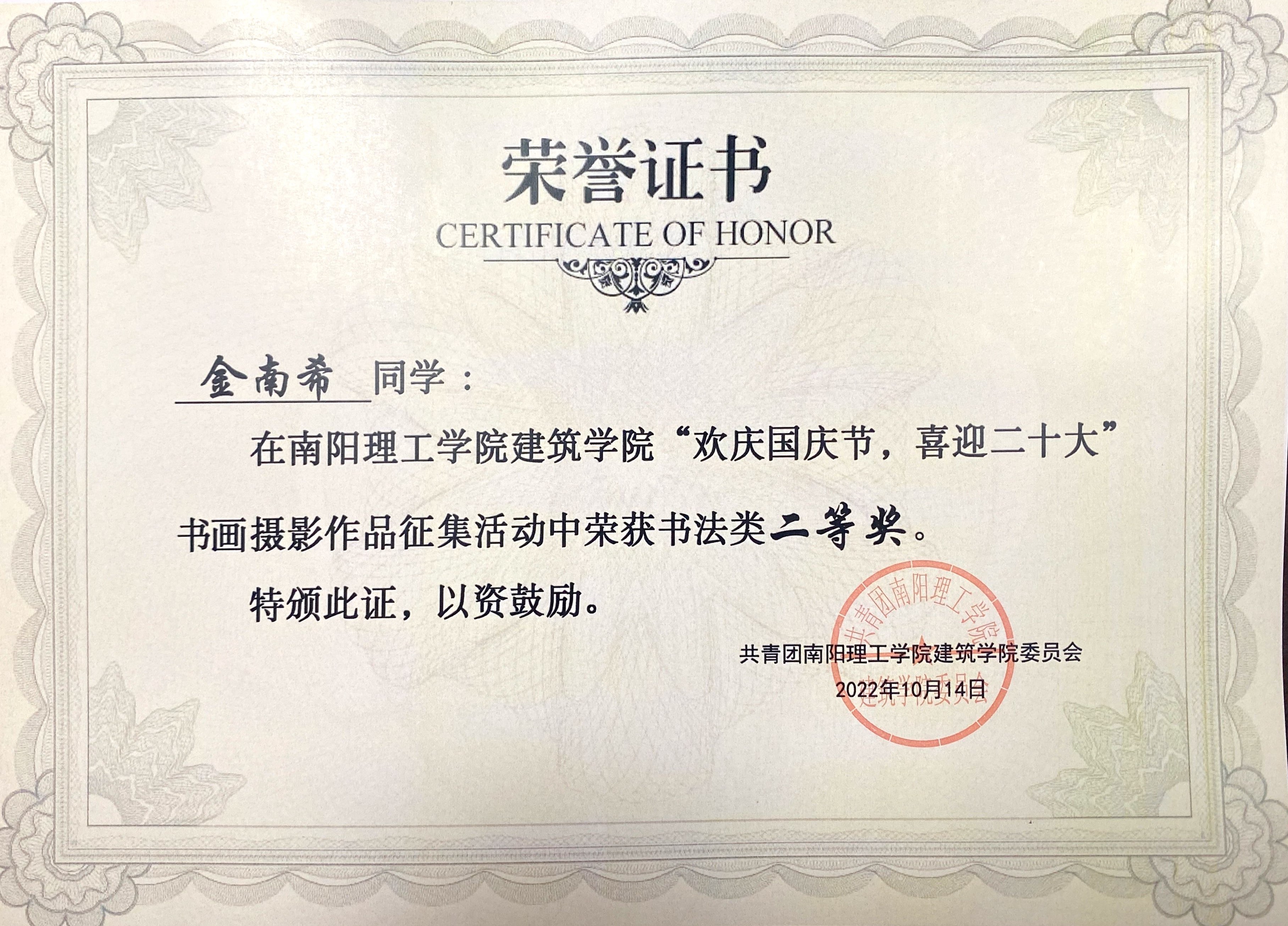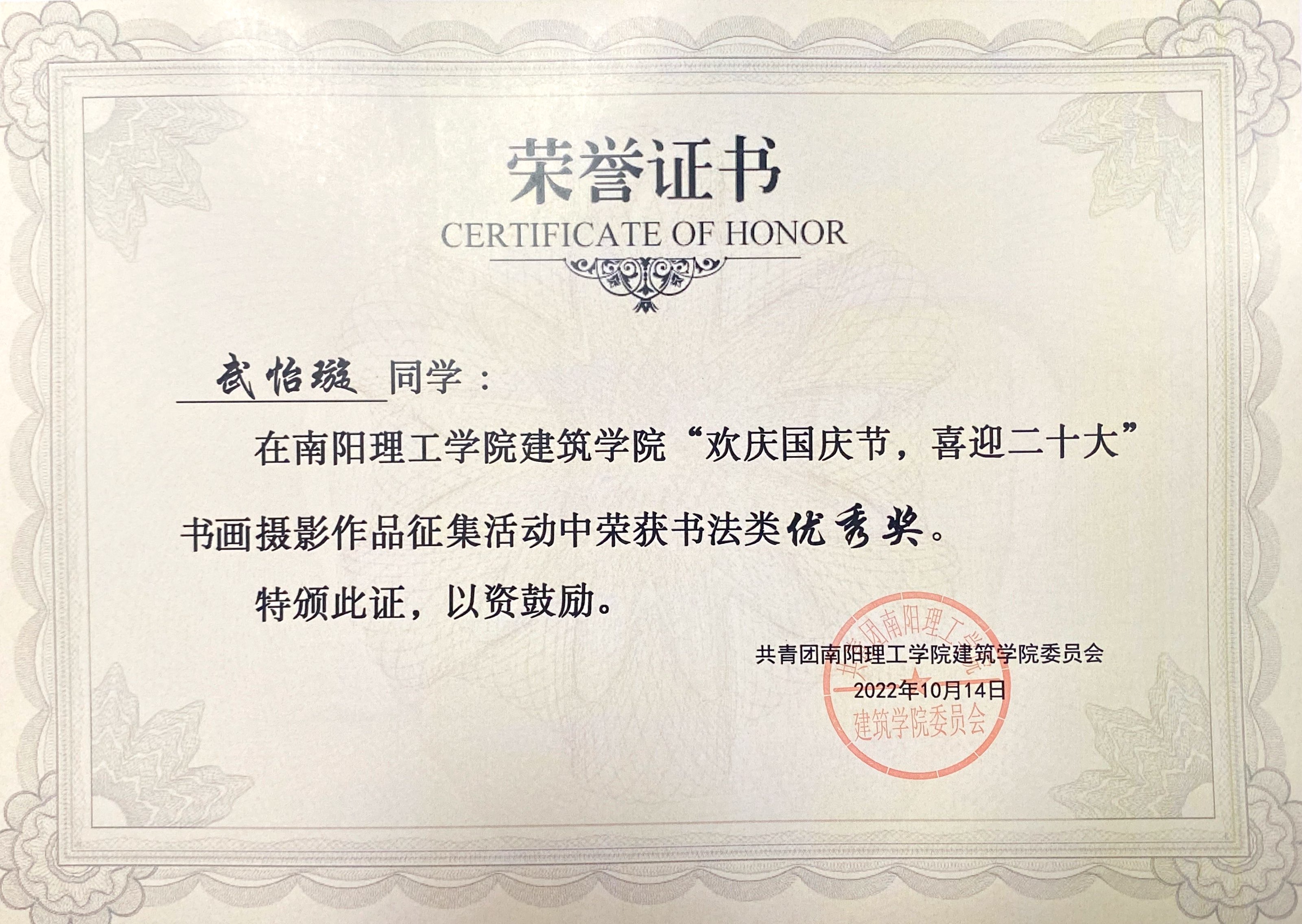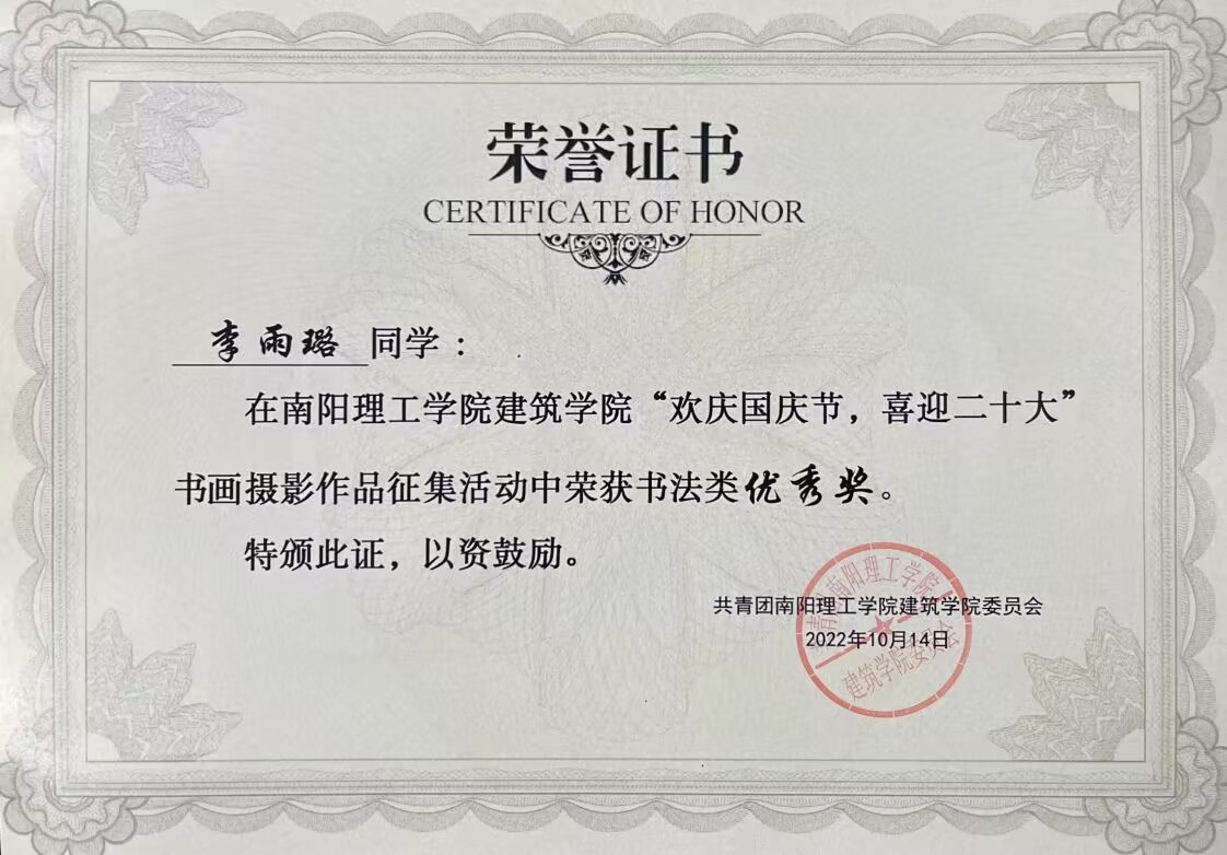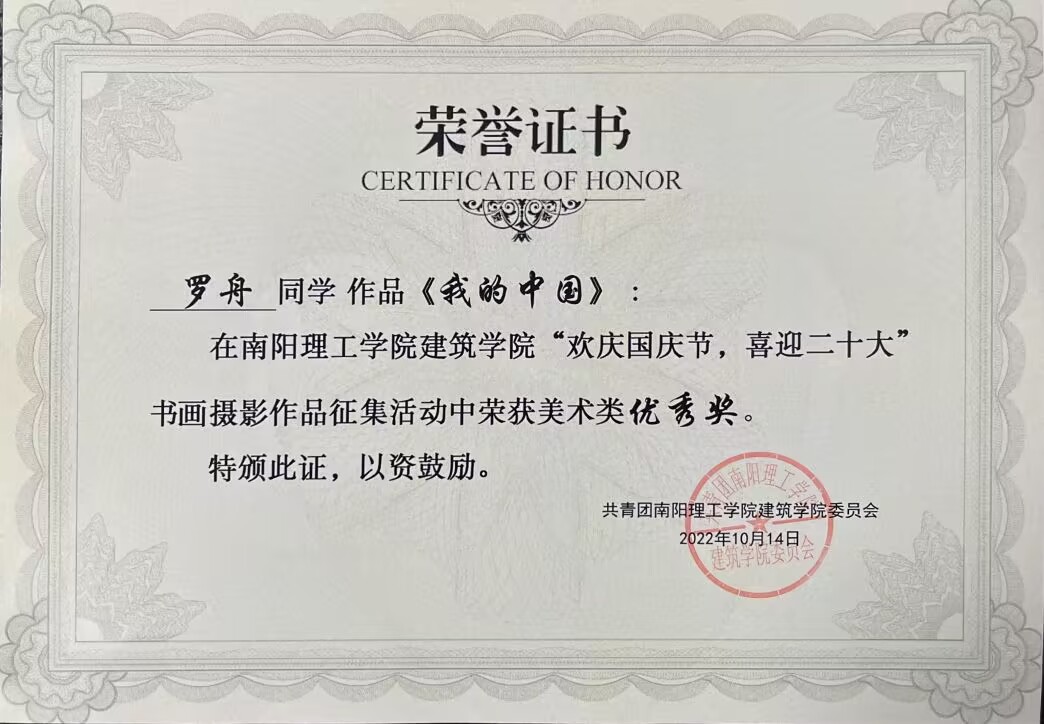 欢庆国庆节,喜迎二十大作品征集活动获奖证书