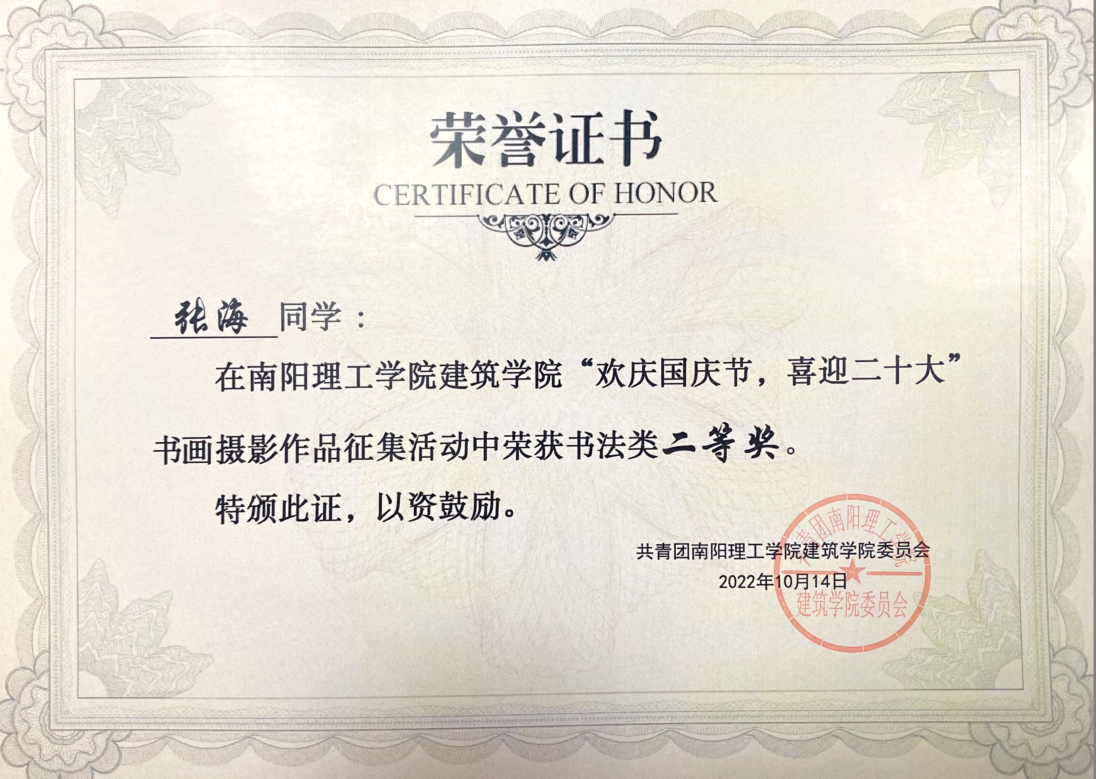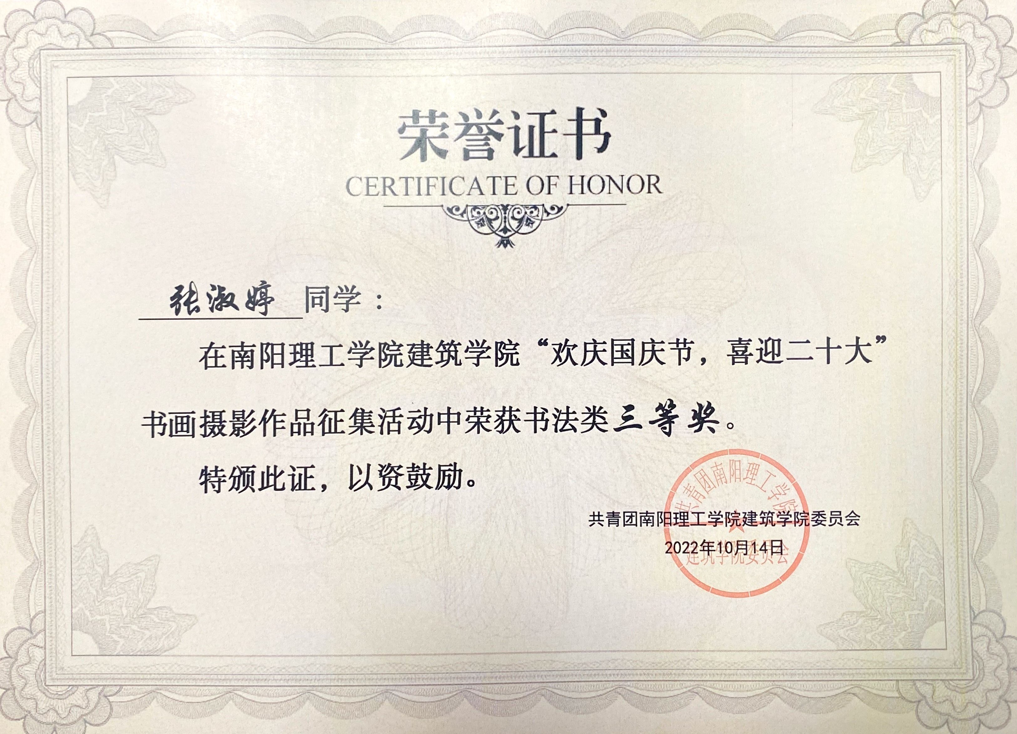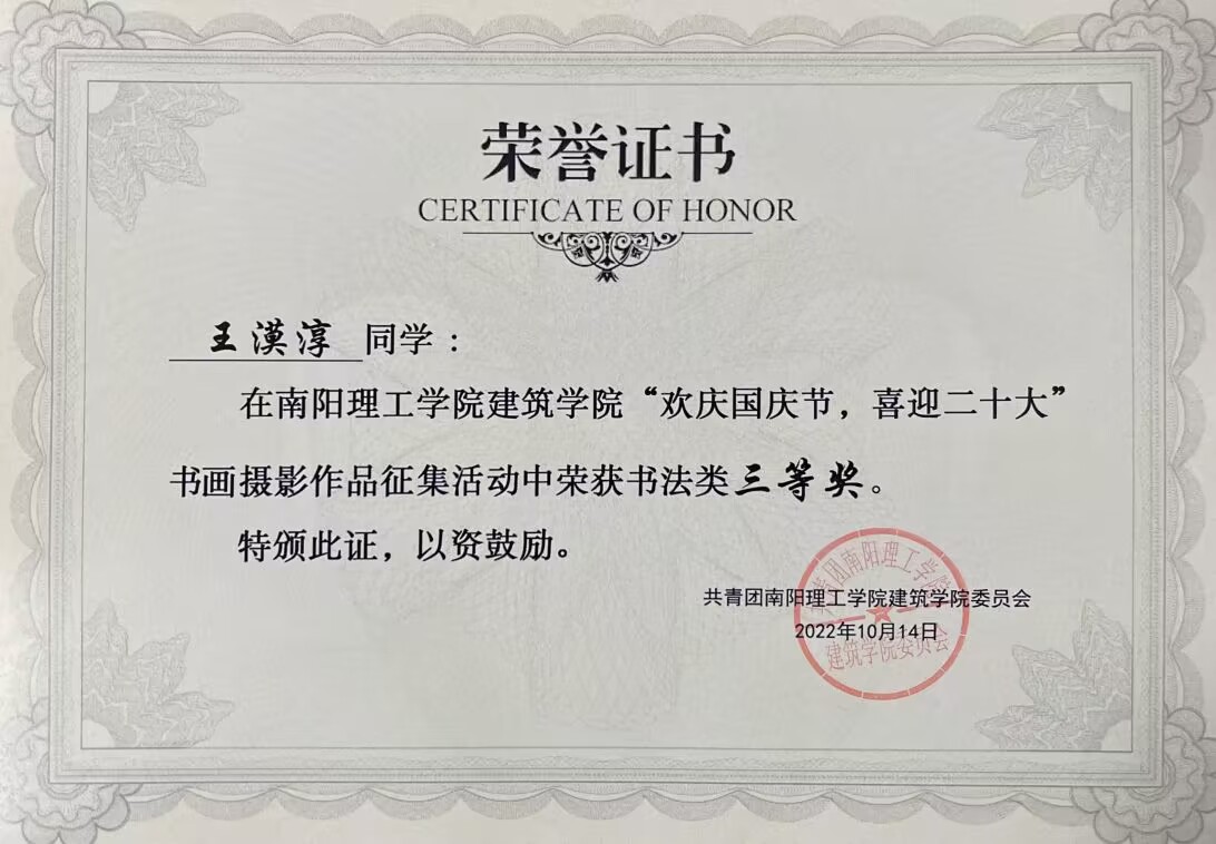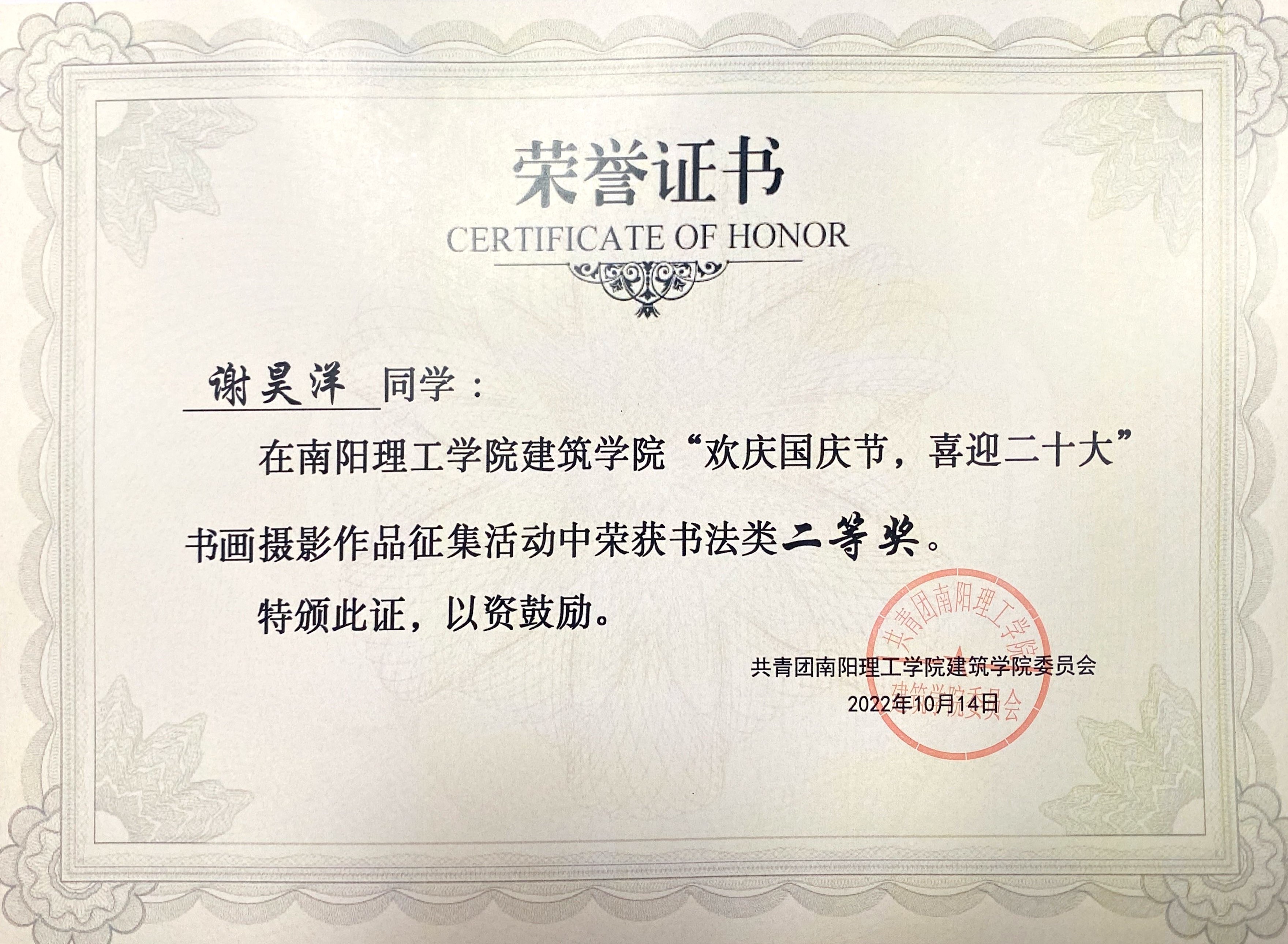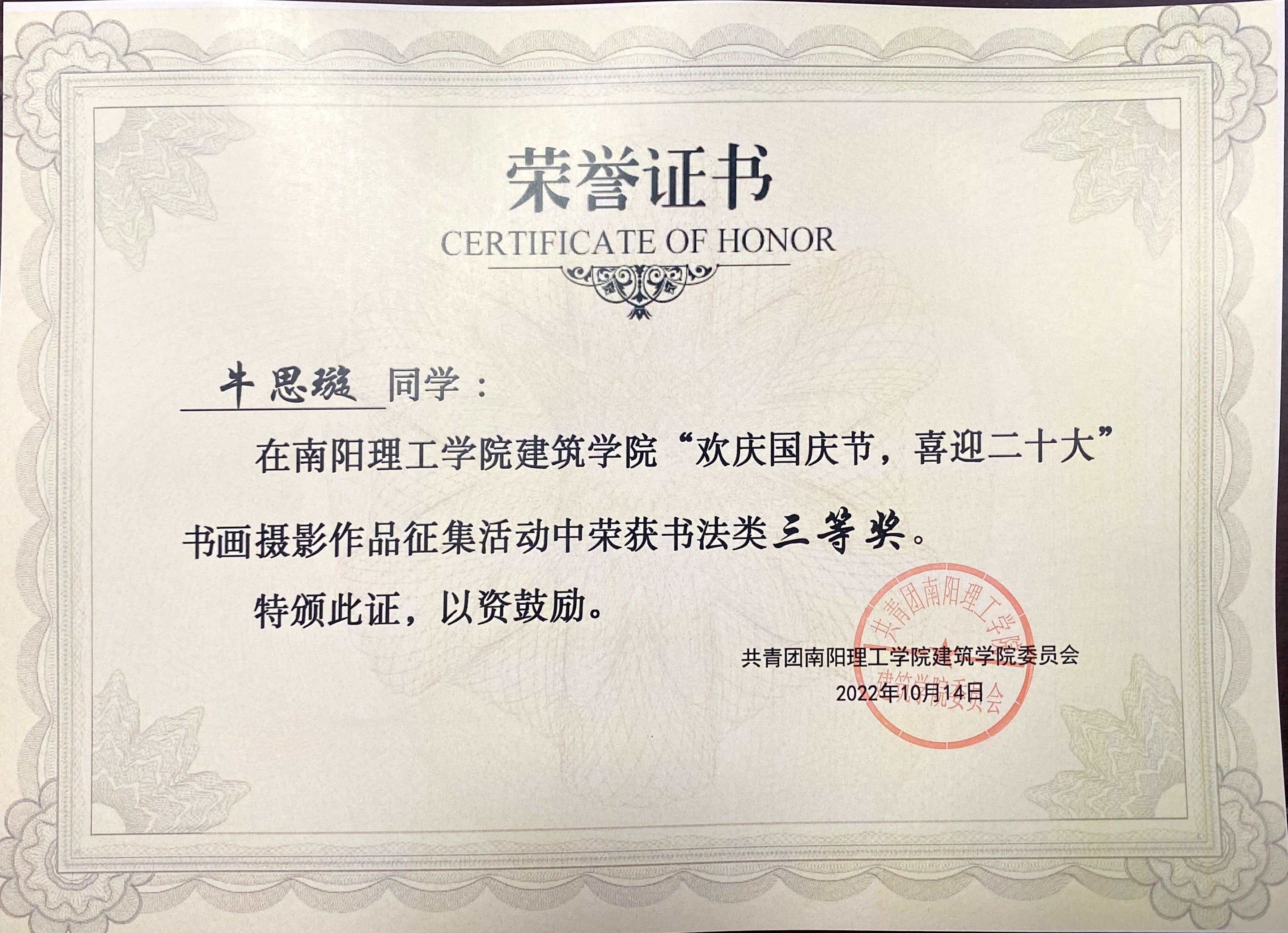 欢庆国庆节,喜迎二十大作品征集活动获奖证书