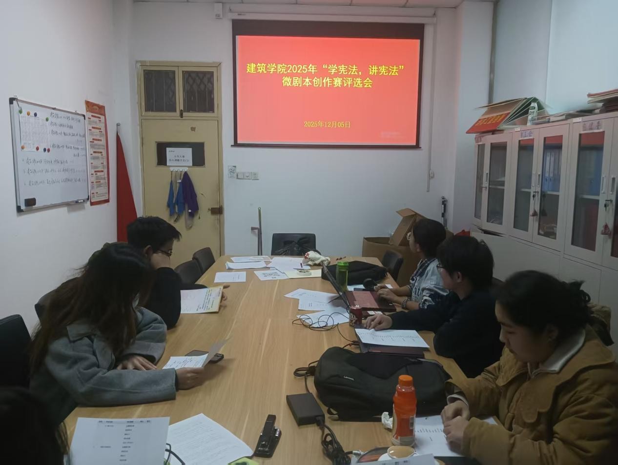 评选会现场,活动负责人介绍了赛事宗旨:通过剧本创作与影像表达,把宪法条文转化为可视、可感、可传播的青春叙事,激发学生学习法律、运用法律的热情,丰富法治宣传教育载体。评选会现场通过PPT展映、评委点评、集中打分的方式对作品进行评估,后续将对优秀剧本进行颁奖,充分发挥优秀作品的育人作用。
